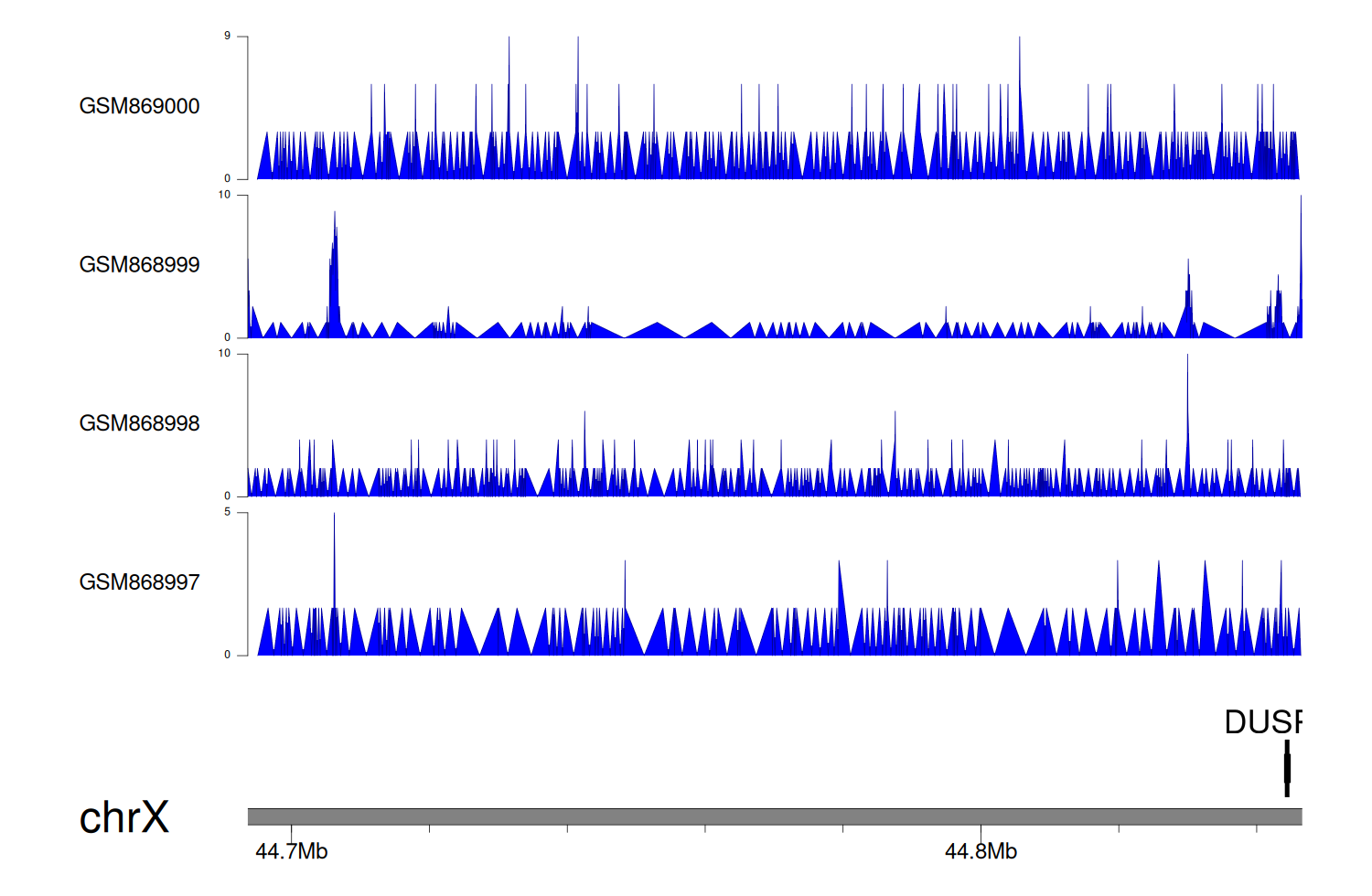 > Dataset: GSE68402 - DUSP21 peak across samples