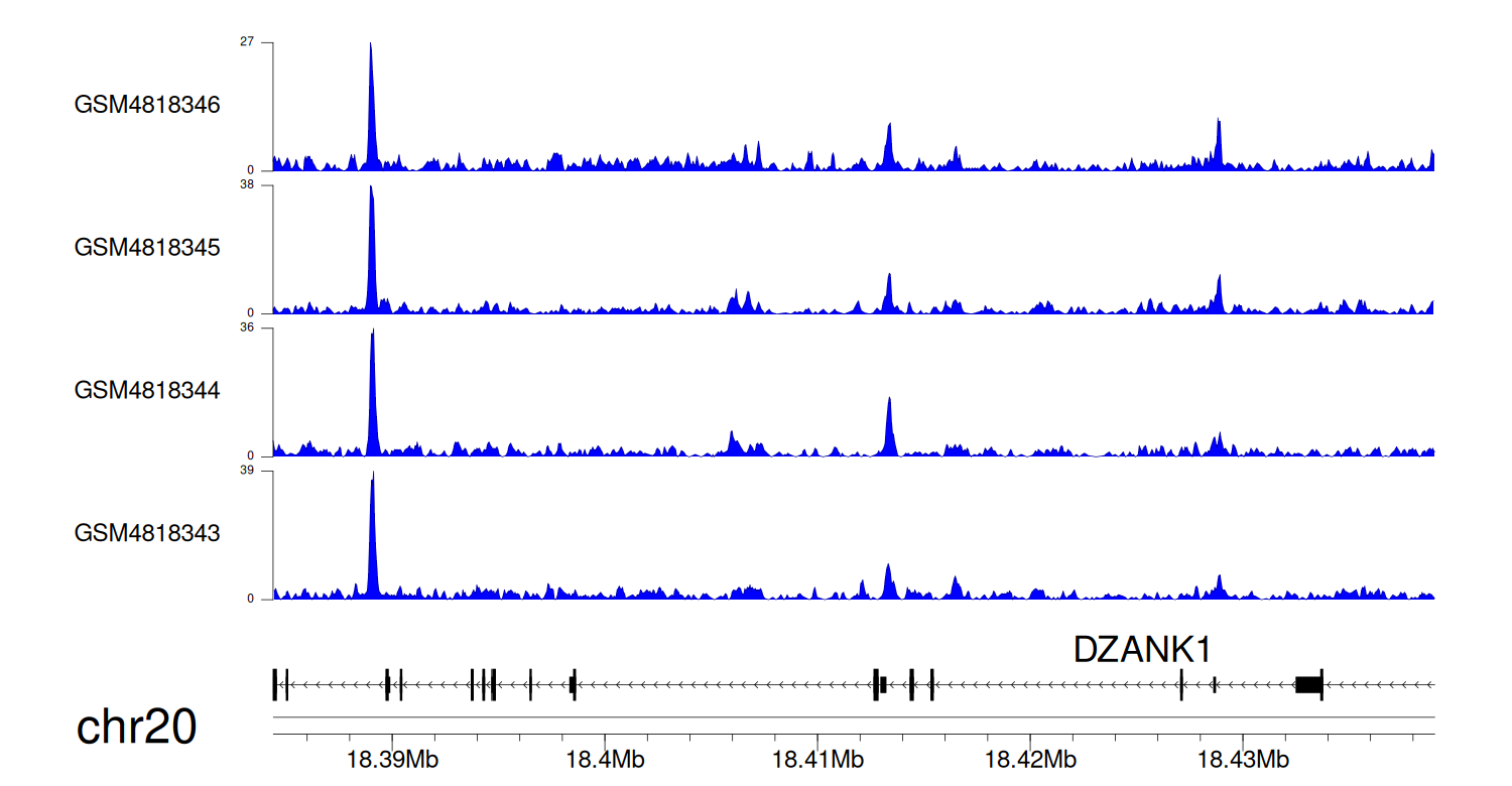 > Dataset: GSE131257 - DZANK1 peak across samples