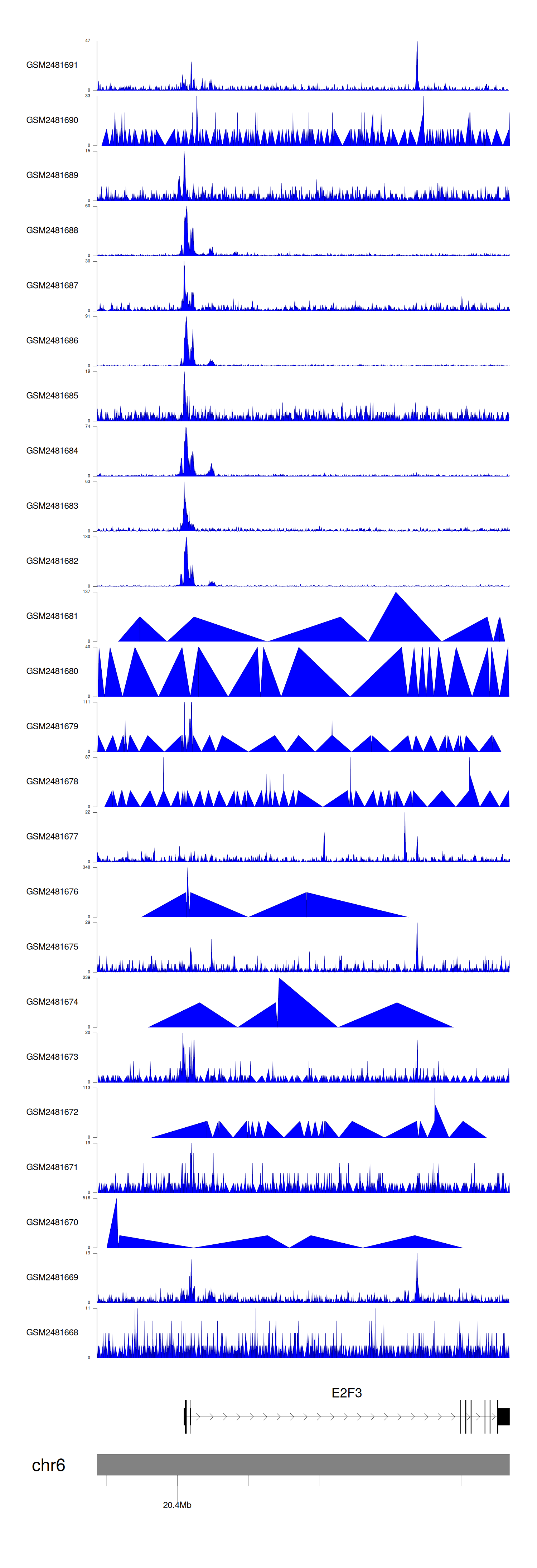 > Dataset: GSE94732 - E2F3 peak across samples