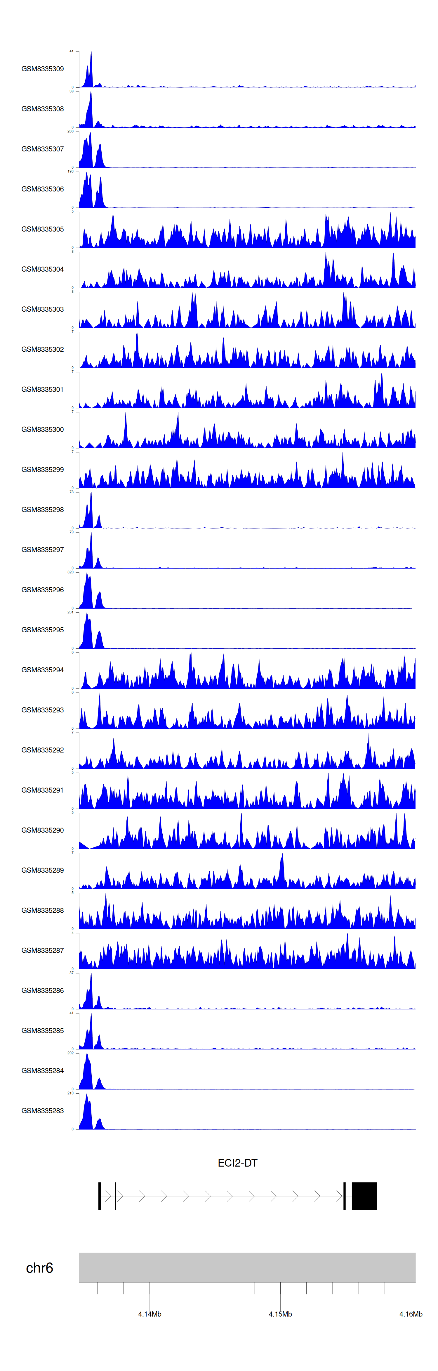 > Dataset: GSE270130 - ECI2-DT peak across samples