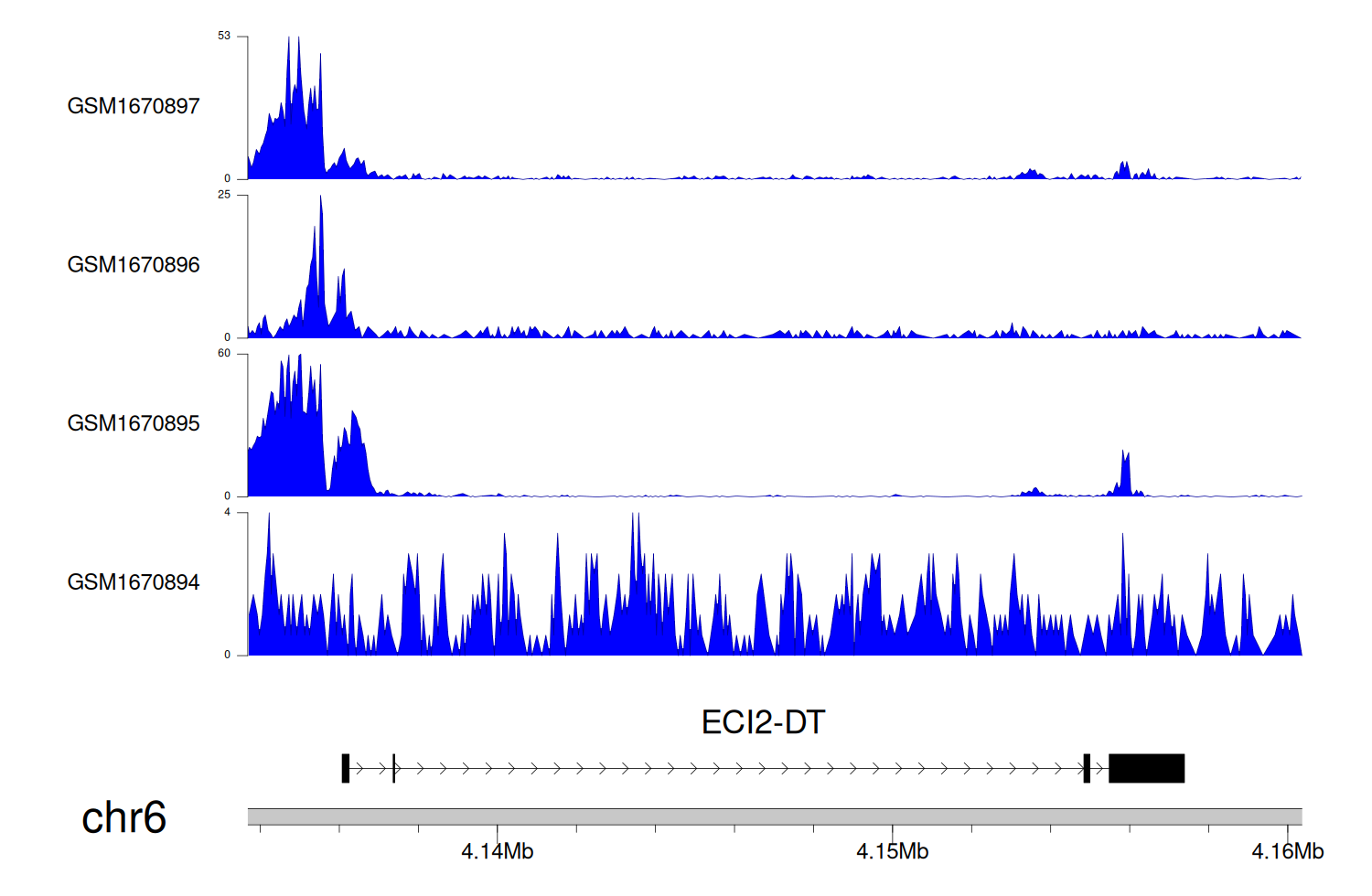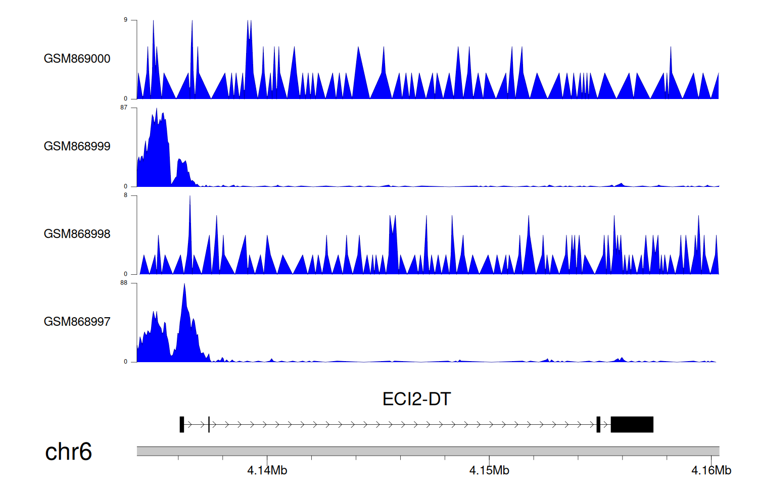 > Dataset: GSE68402 - ECI2-DT peak across samples