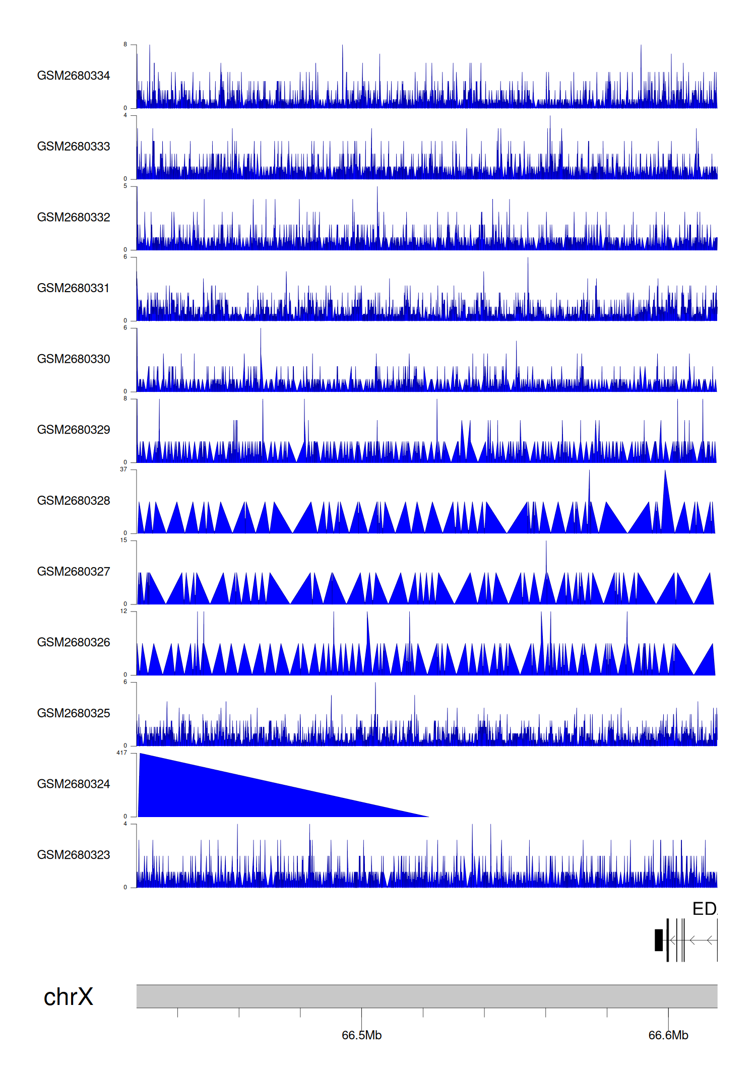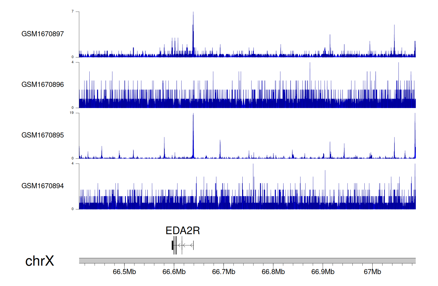 > Dataset: GSE68402 - EDA2R peak across samples