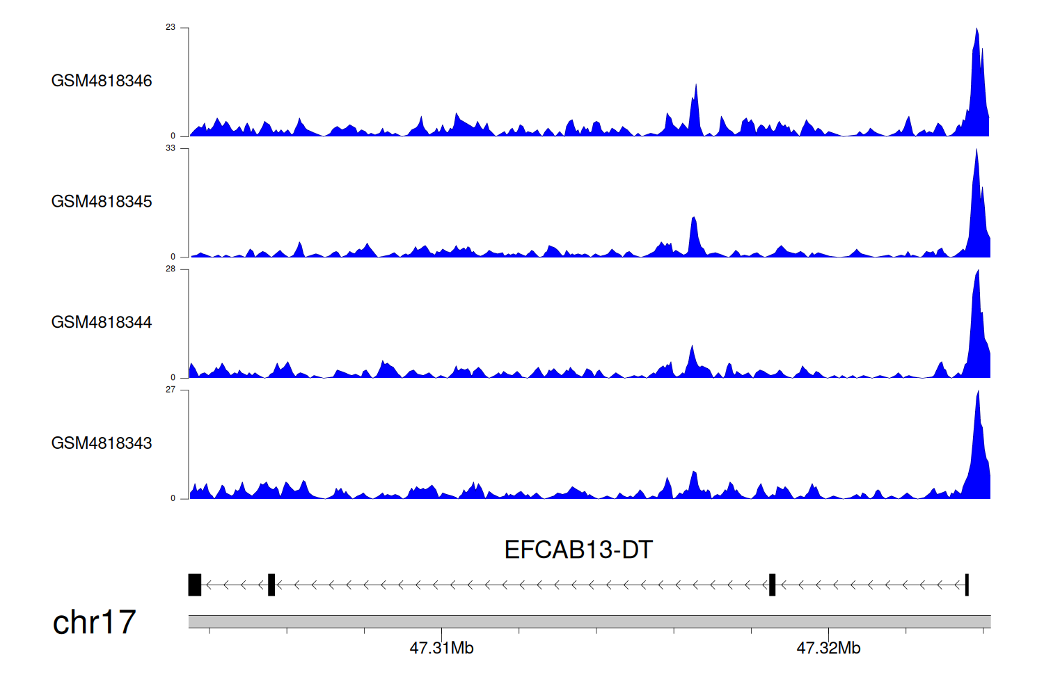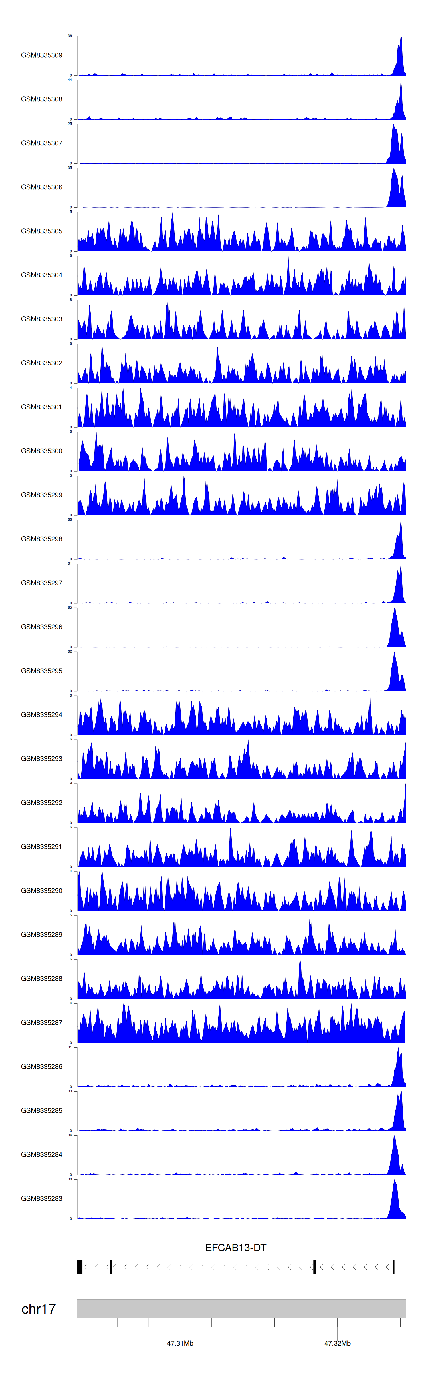 > Dataset: GSE131257 - EFCAB13-DT peak across samples