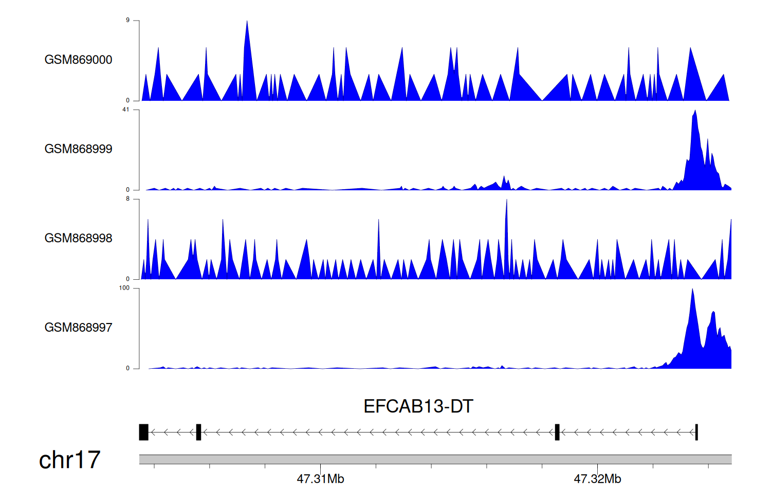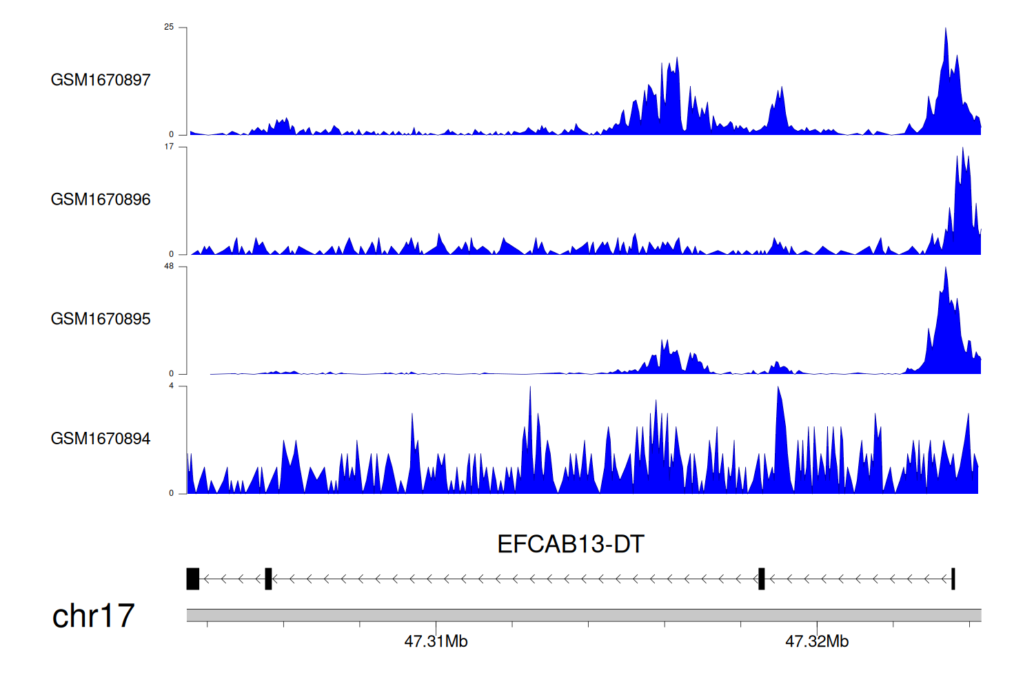 > Dataset: GSE68402 - EFCAB13-DT peak across samples
