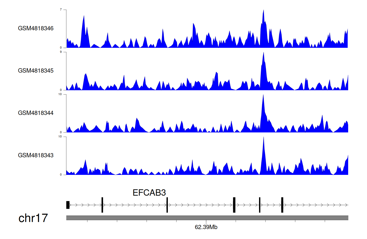 > Dataset: GSE131257 - EFCAB3 peak across samples