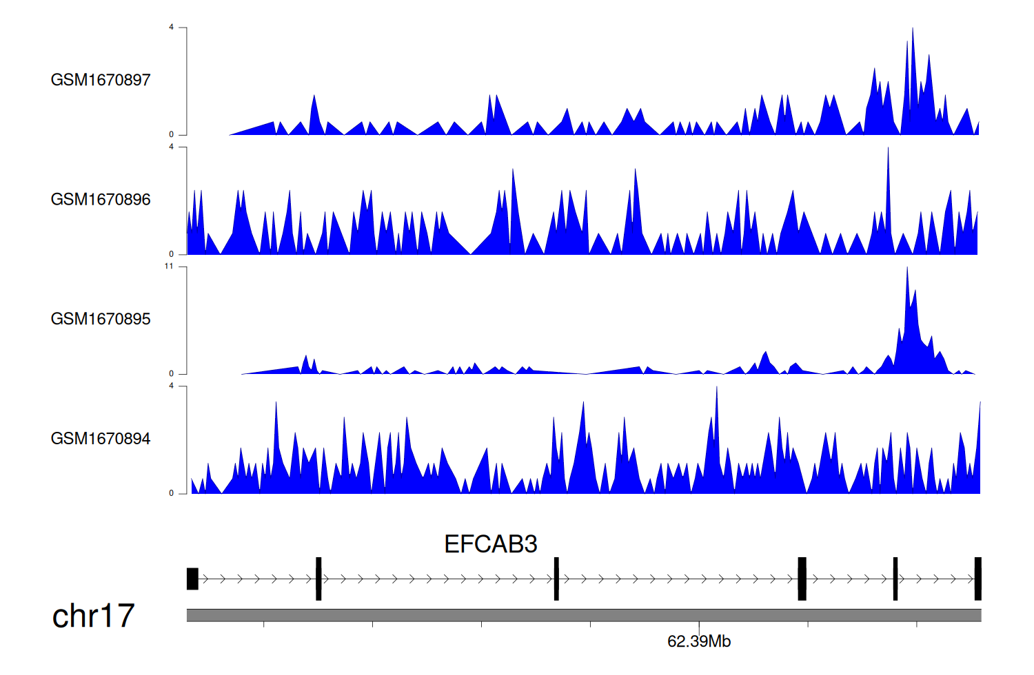 > Dataset: GSE68402 - EFCAB3 peak across samples