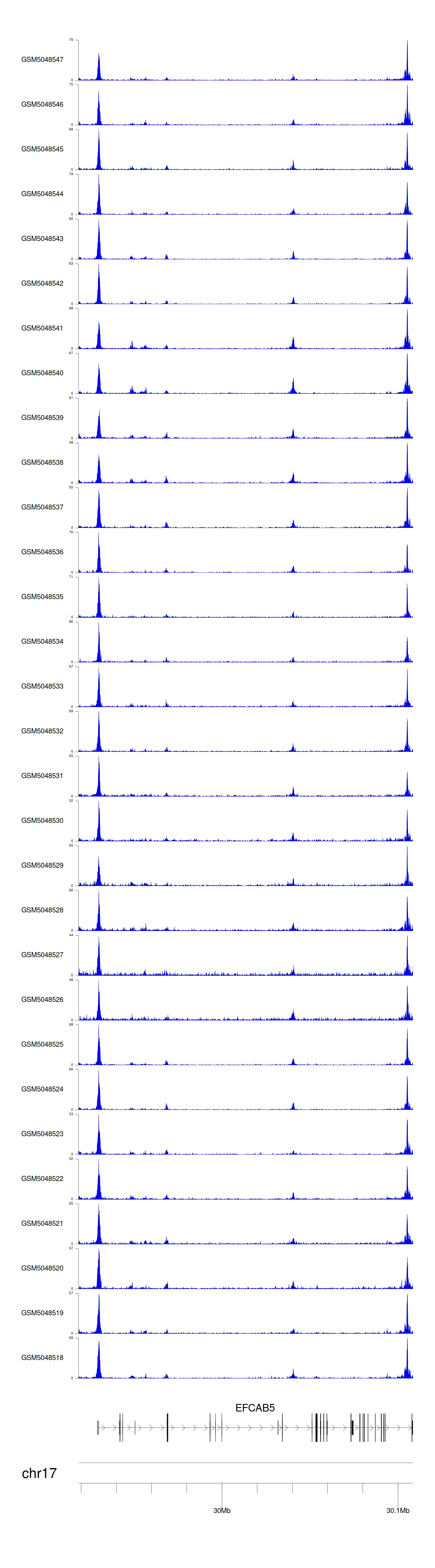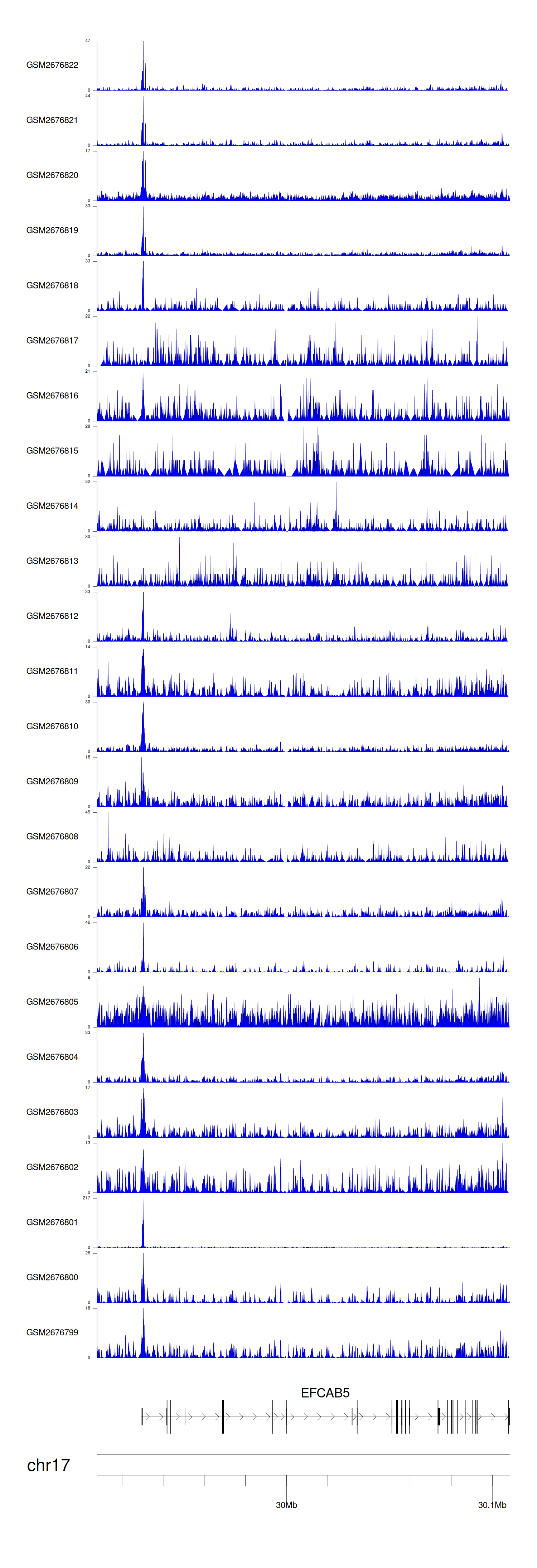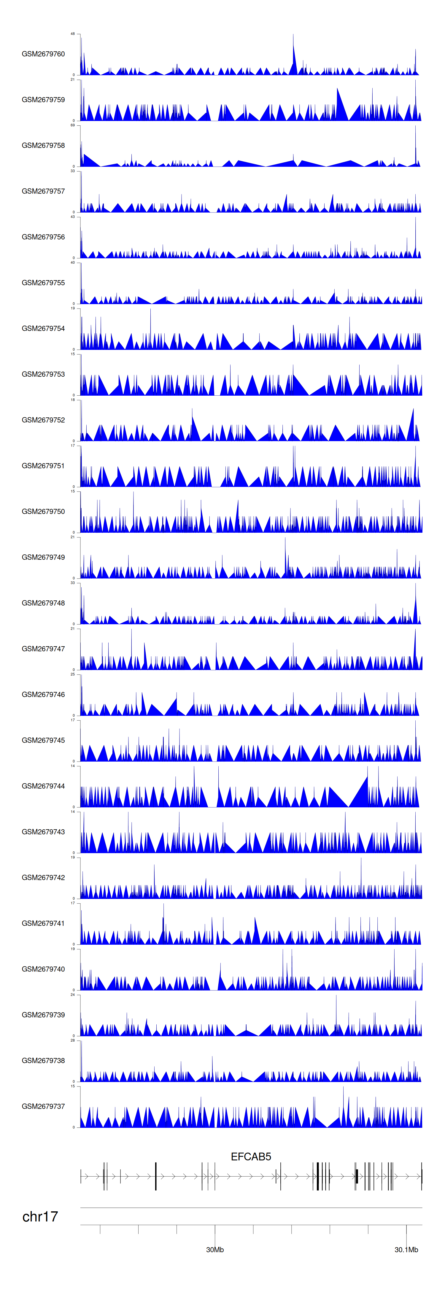 > Dataset: GSE30738 - EFCAB5 peak across samples