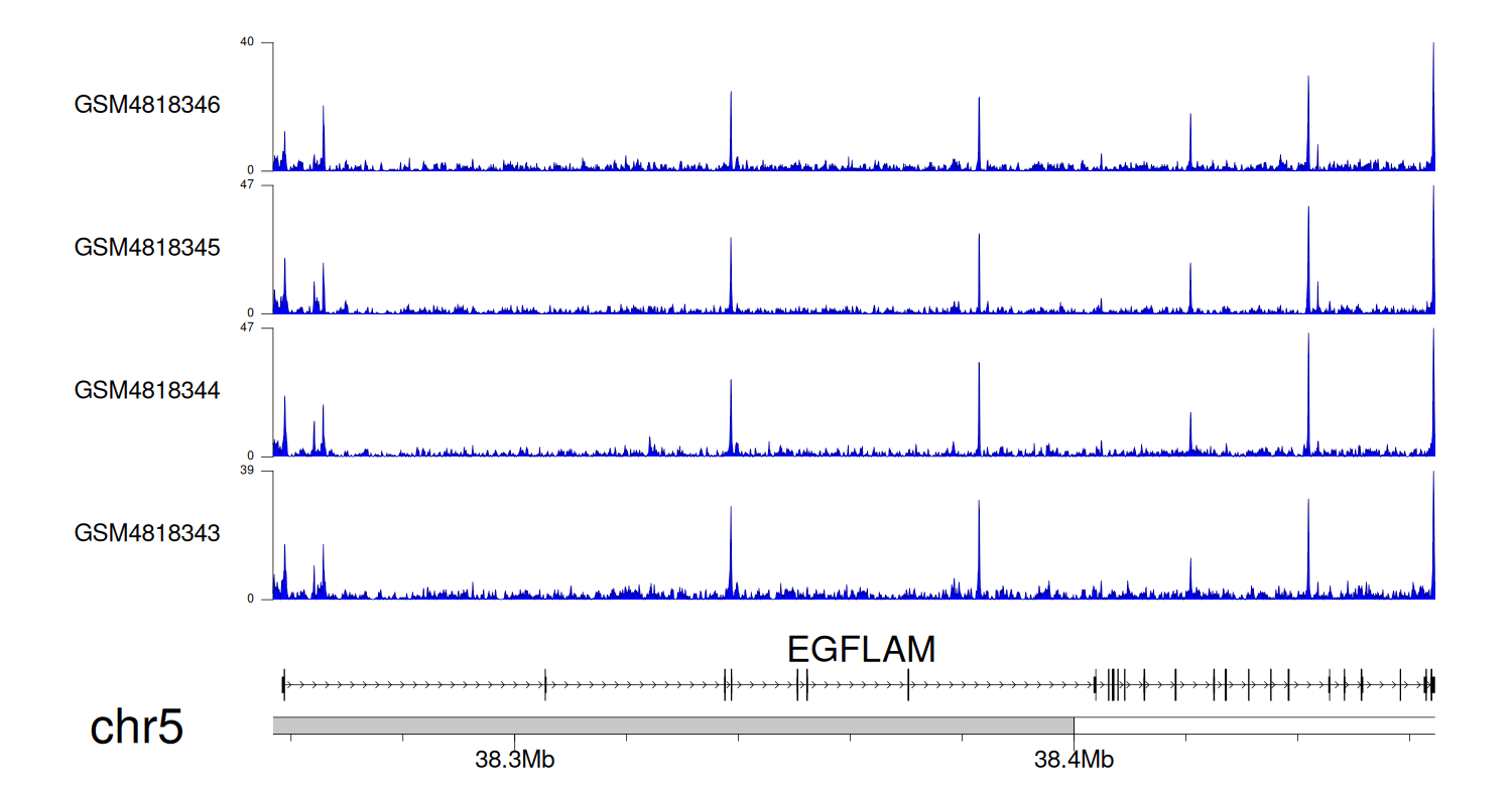 > Dataset: GSE131257 - EGFLAM peak across samples