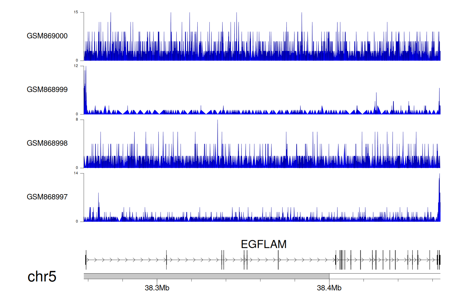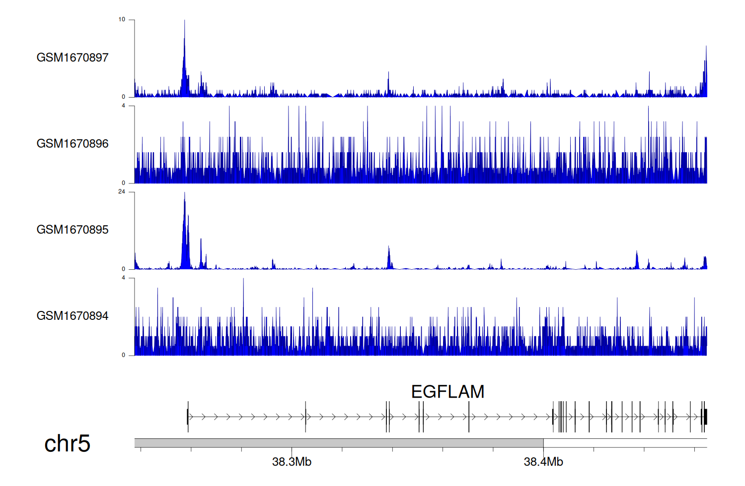 > Dataset: GSE68402 - EGFLAM peak across samples