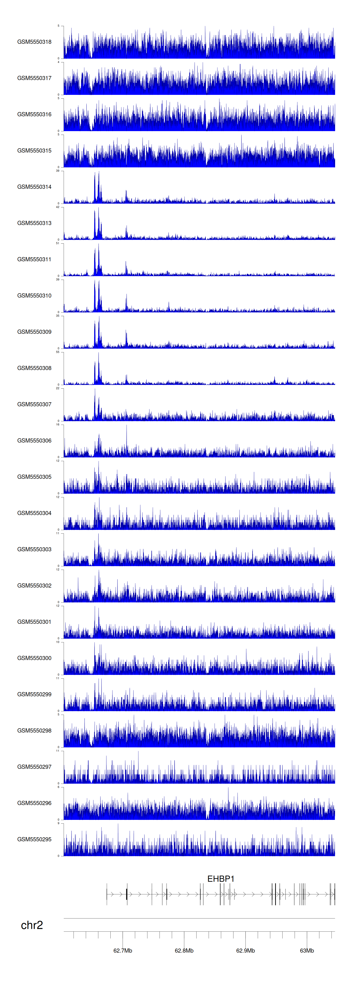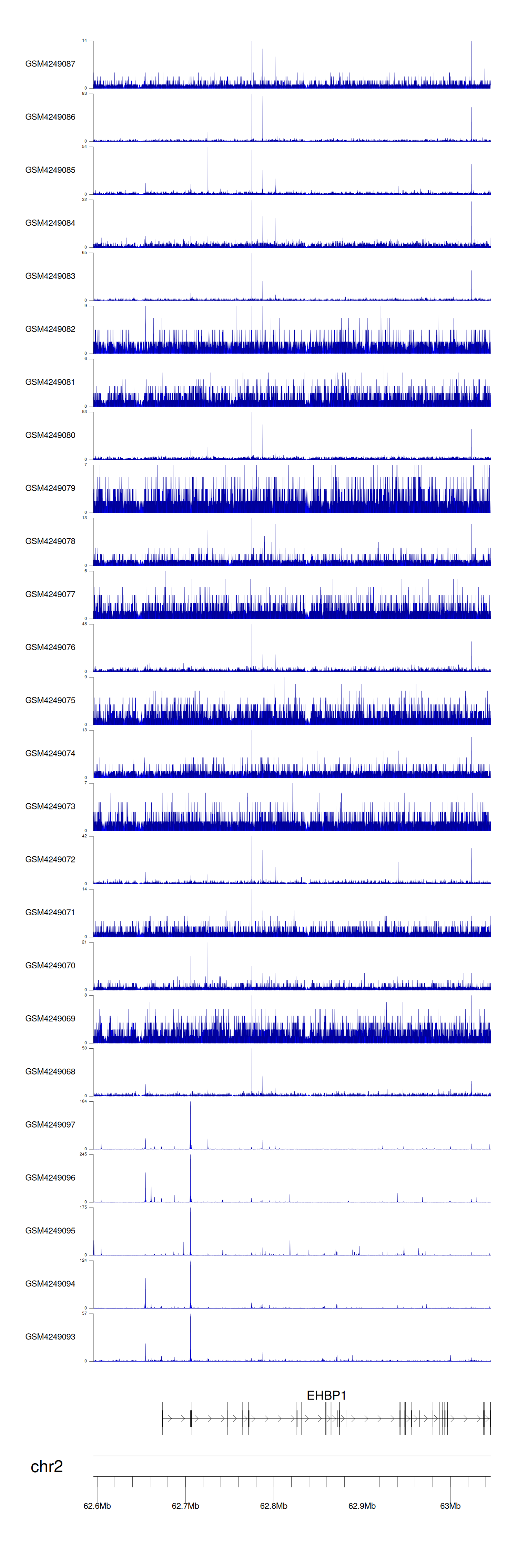 > Dataset: GSE143026 - EHBP1 peak across samples
