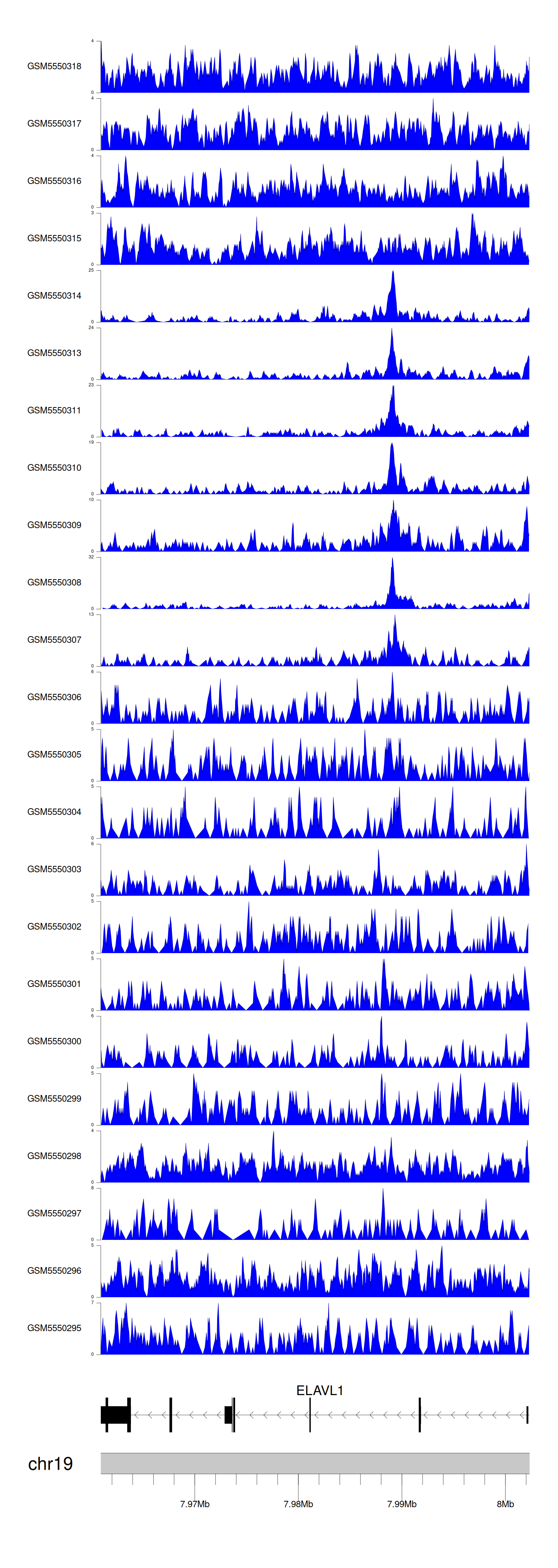 > Dataset: GSE143026 - ELAVL1 peak across samples