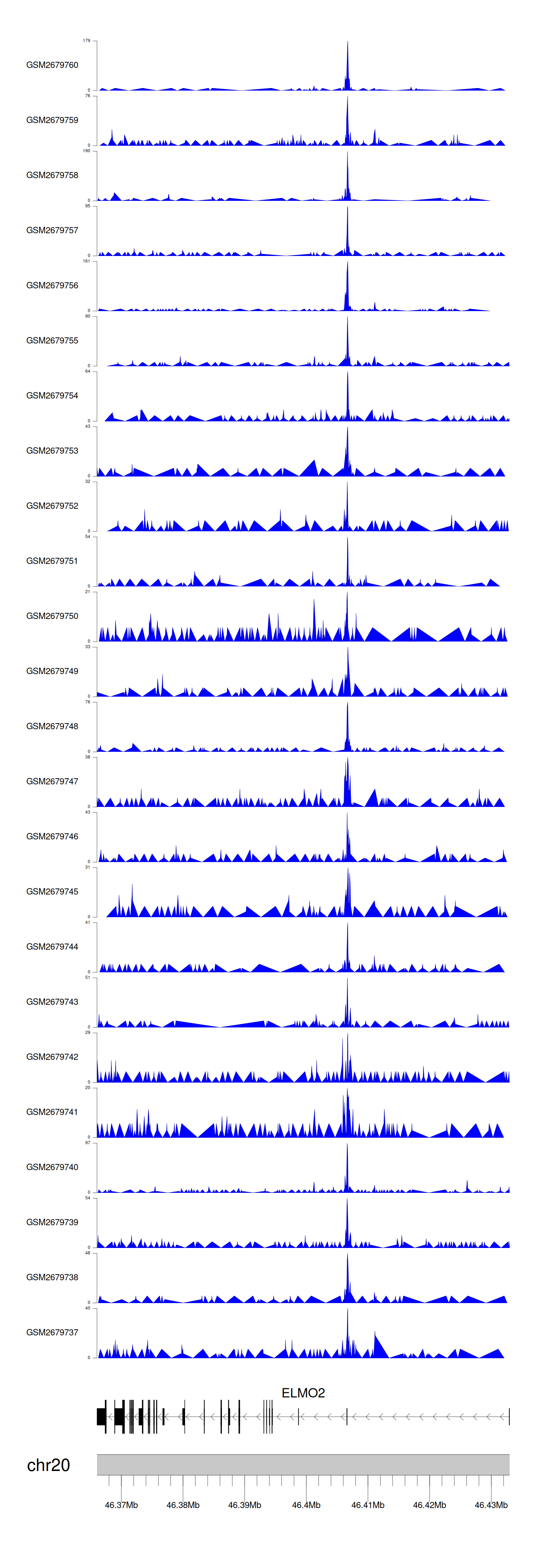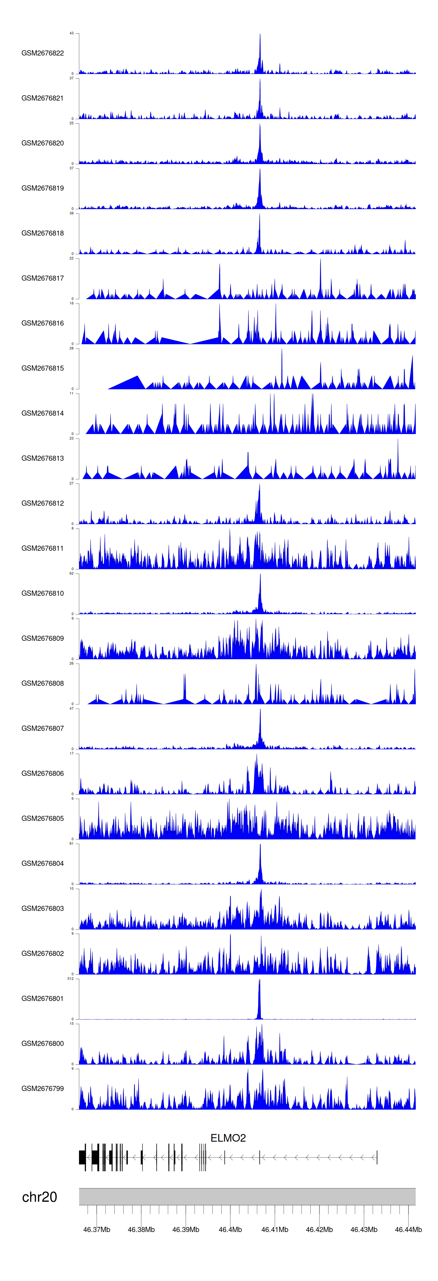 > Dataset: GSE100376 - ELMO2 peak across samples