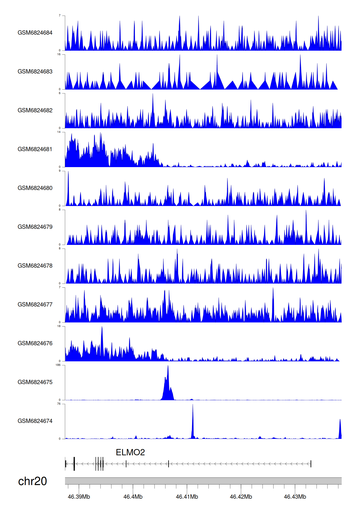 > Dataset: GSE165703 - ELMO2 peak across samples