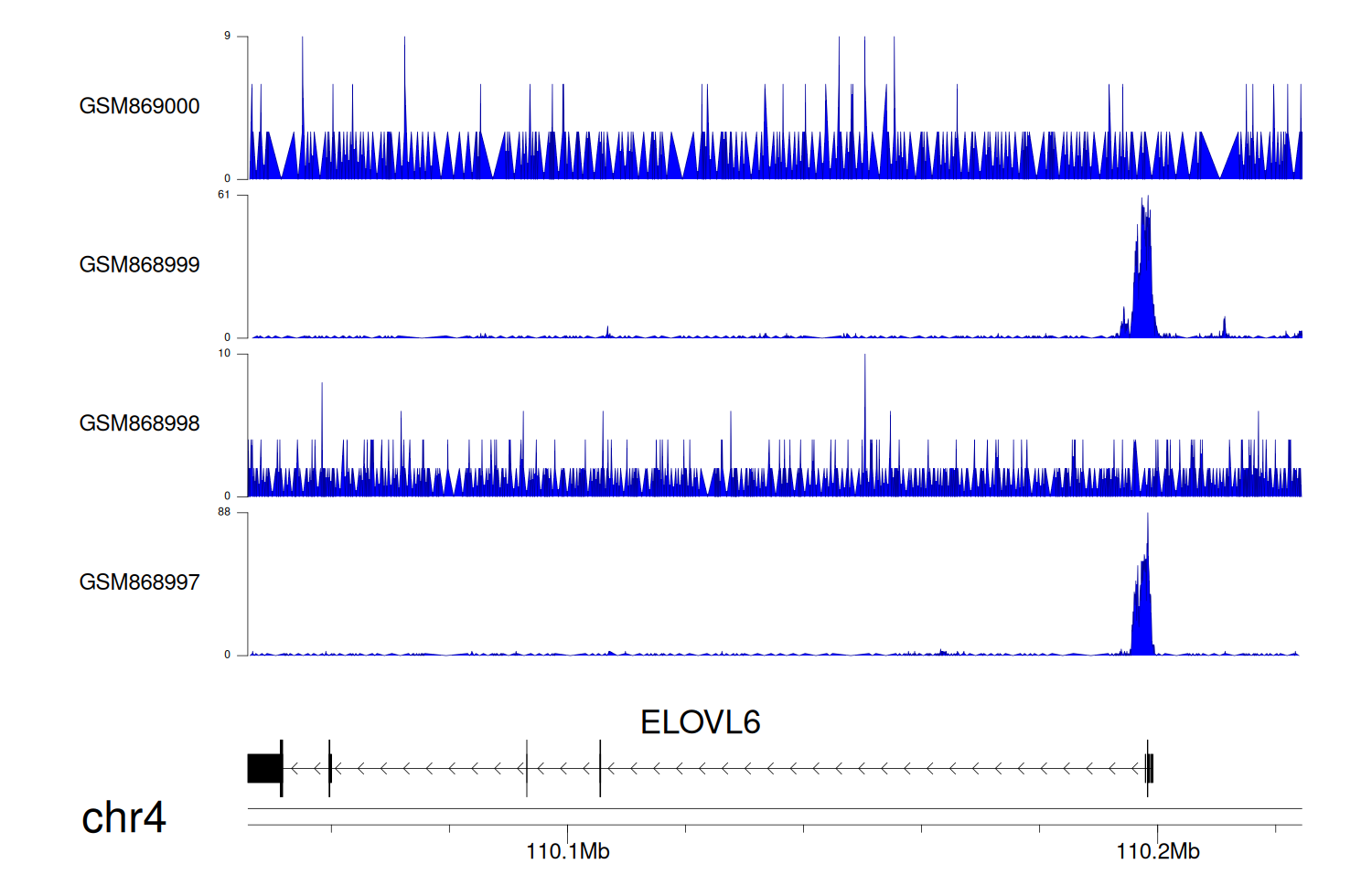 > Dataset: GSE68402 - ELOVL6 peak across samples