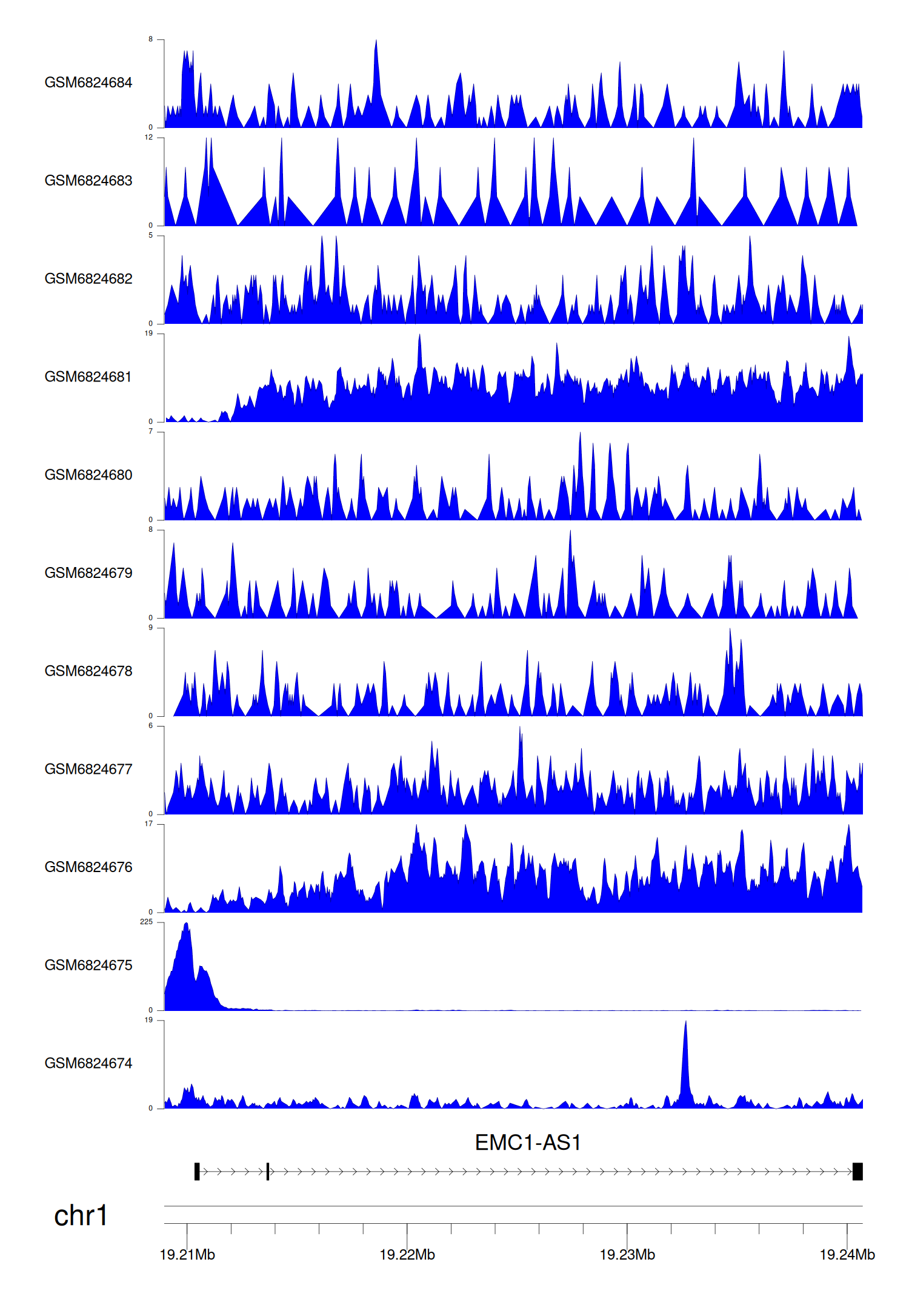 > Dataset: GSE144329 - EMC1-AS1 peak across samples