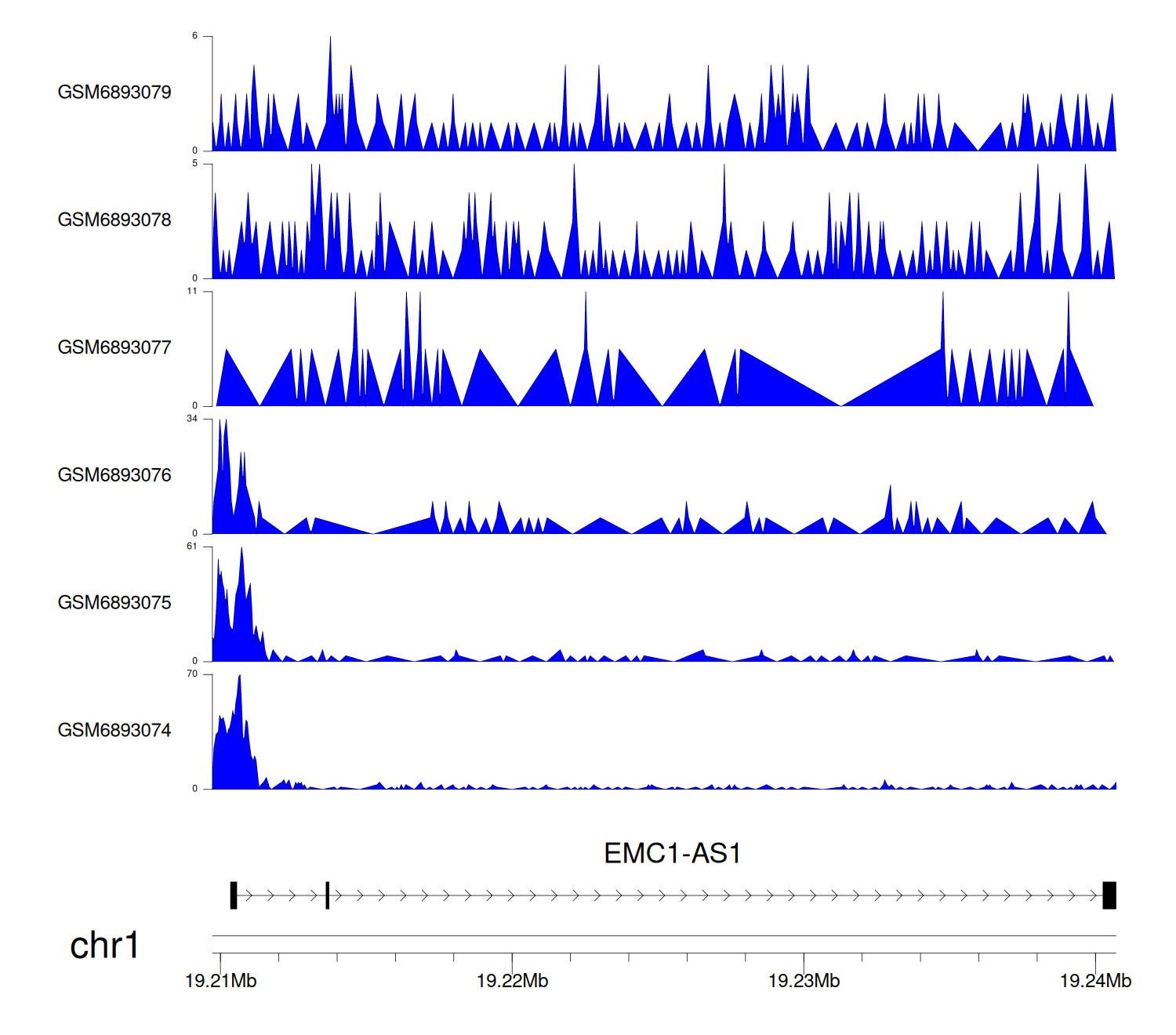 > Dataset: GSE211651 - EMC1-AS1 peak across samples