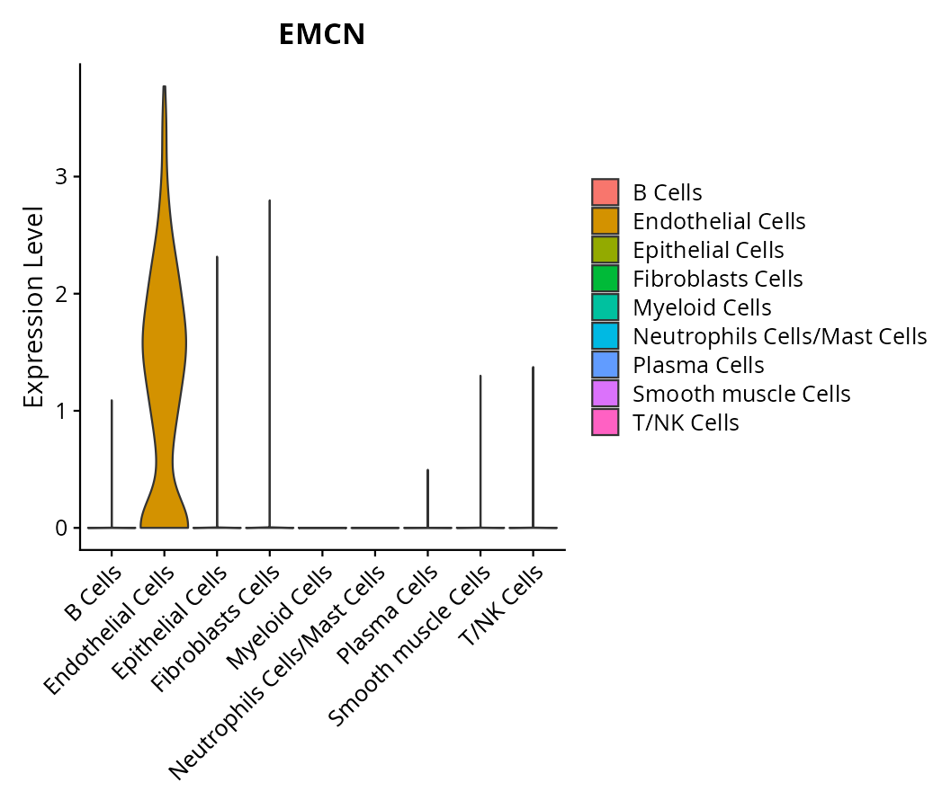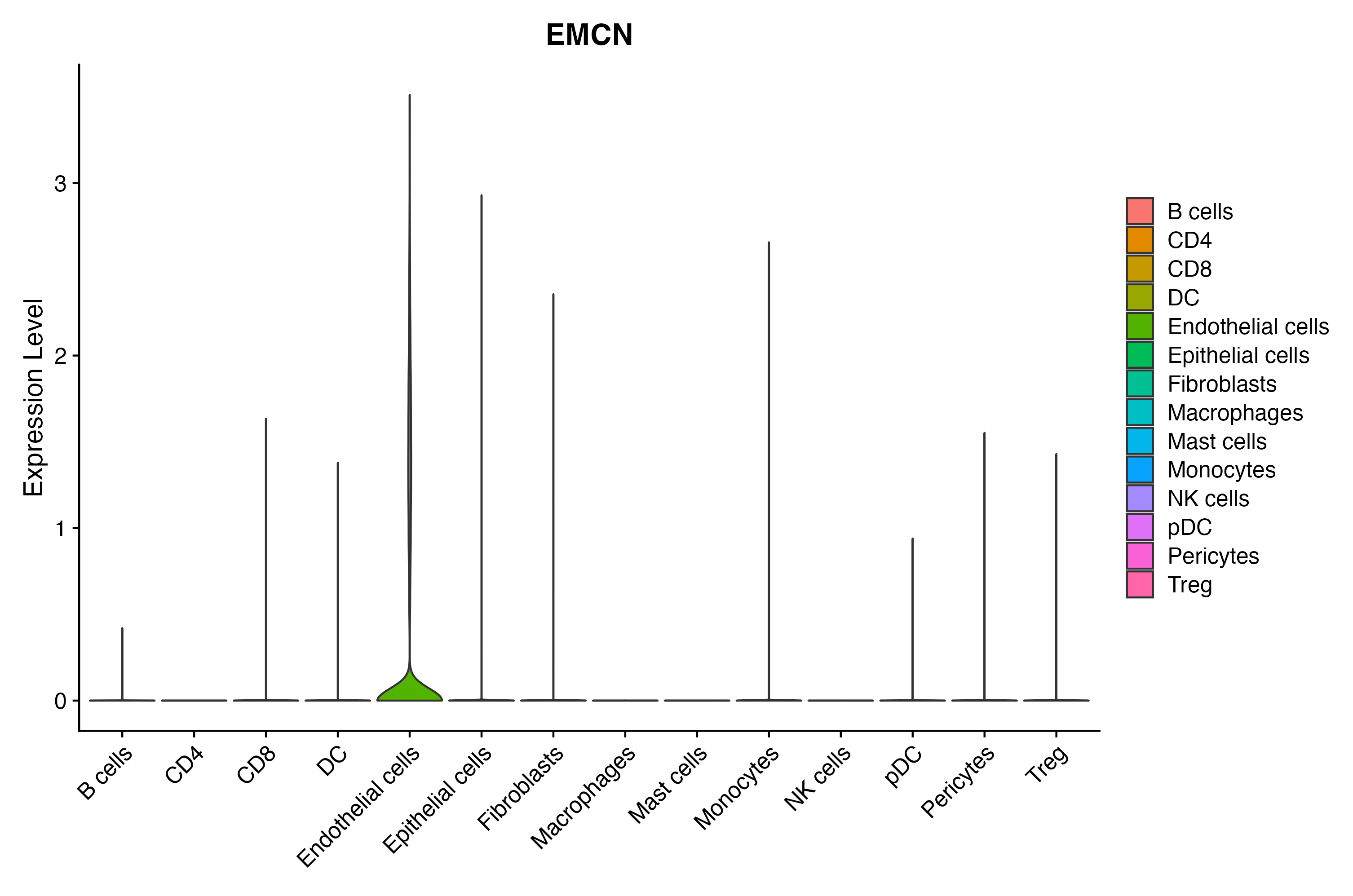 Summary EMCN is a mucin-like sialoglycoprotein that interferes with the assembly of focal adhesion complexes and inhibits interaction between cells and the extracellular matrix (Kinoshita et al., 2001 [PubMed 11418125]).[supplied by OMIM, Mar 2008]
