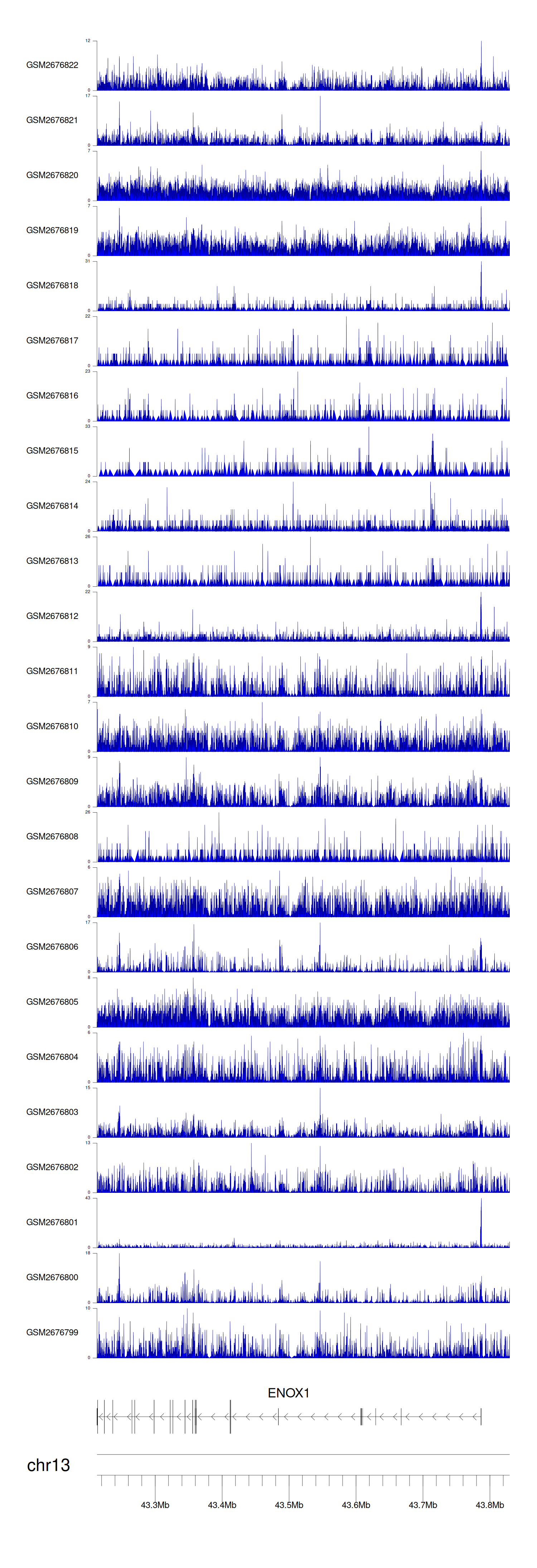 > Dataset: GSE100376 - ENOX1 peak across samples