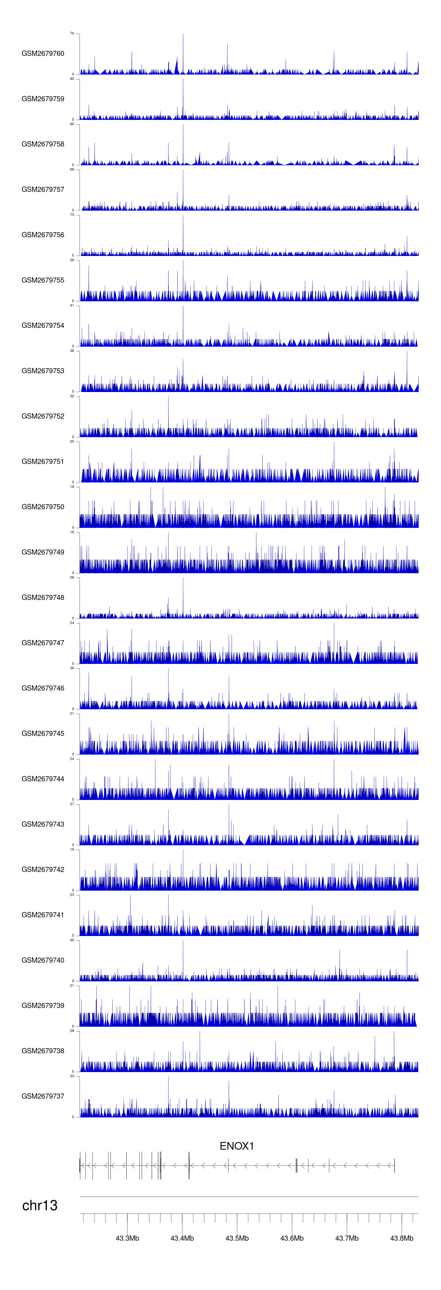 > Dataset: GSE30738 - ENOX1 peak across samples