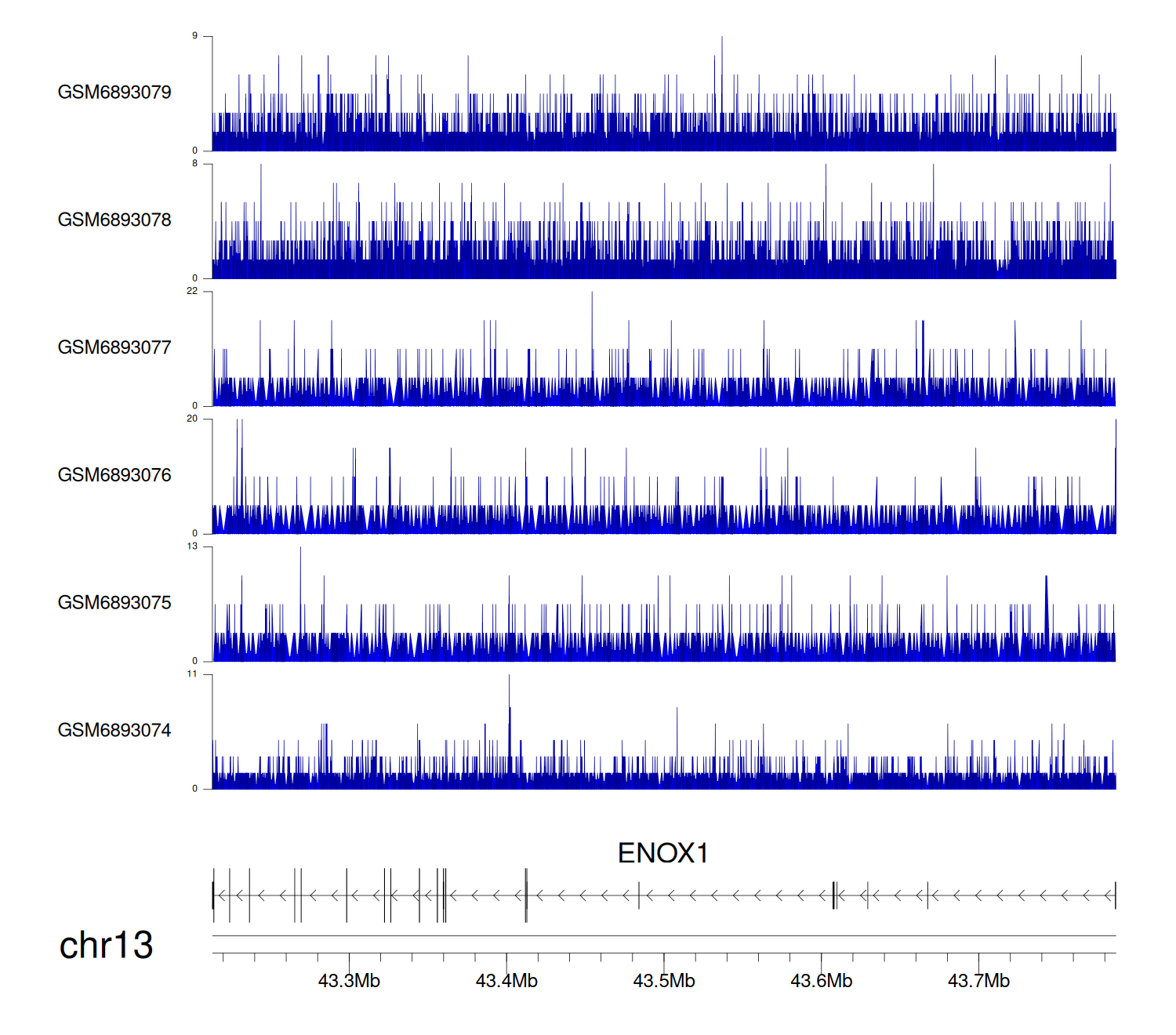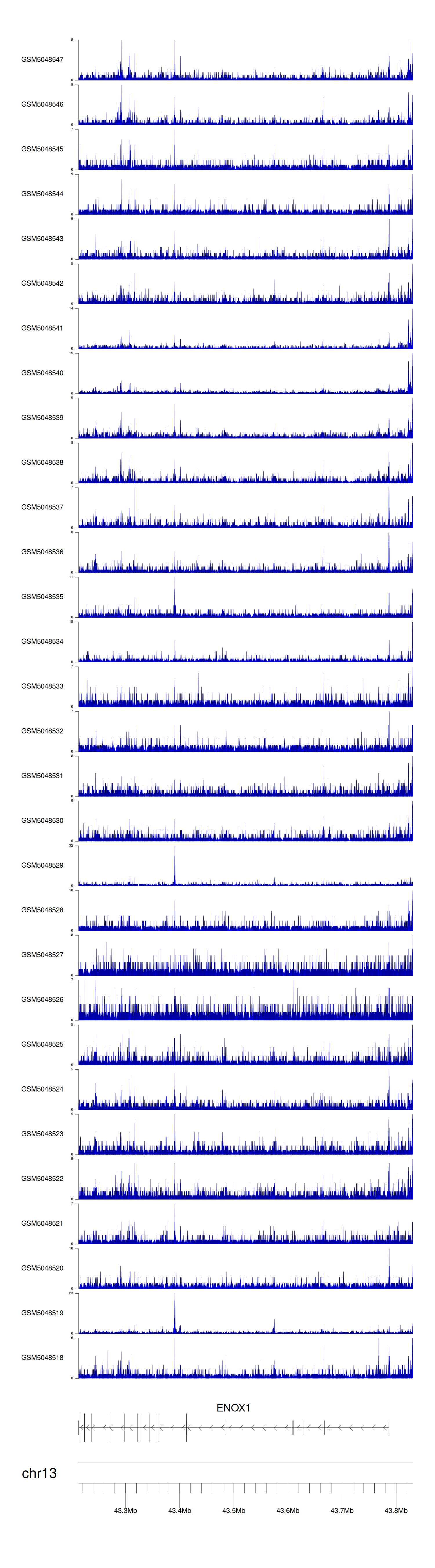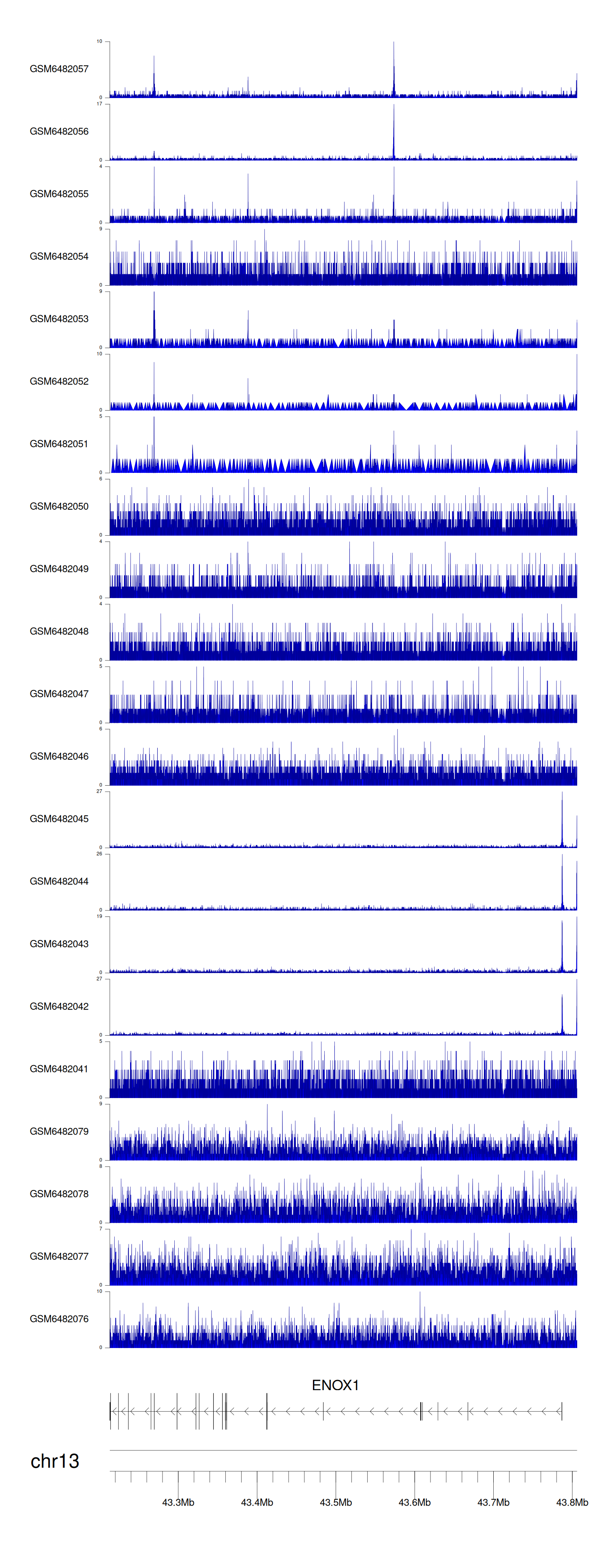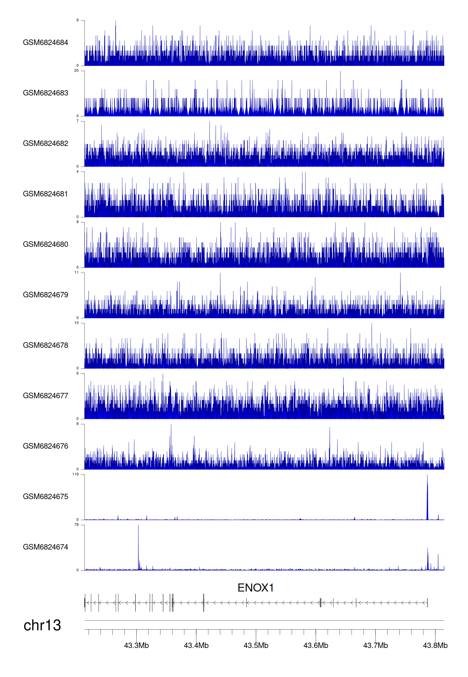 > Dataset: GSE220859 - ENOX1 peak across samples