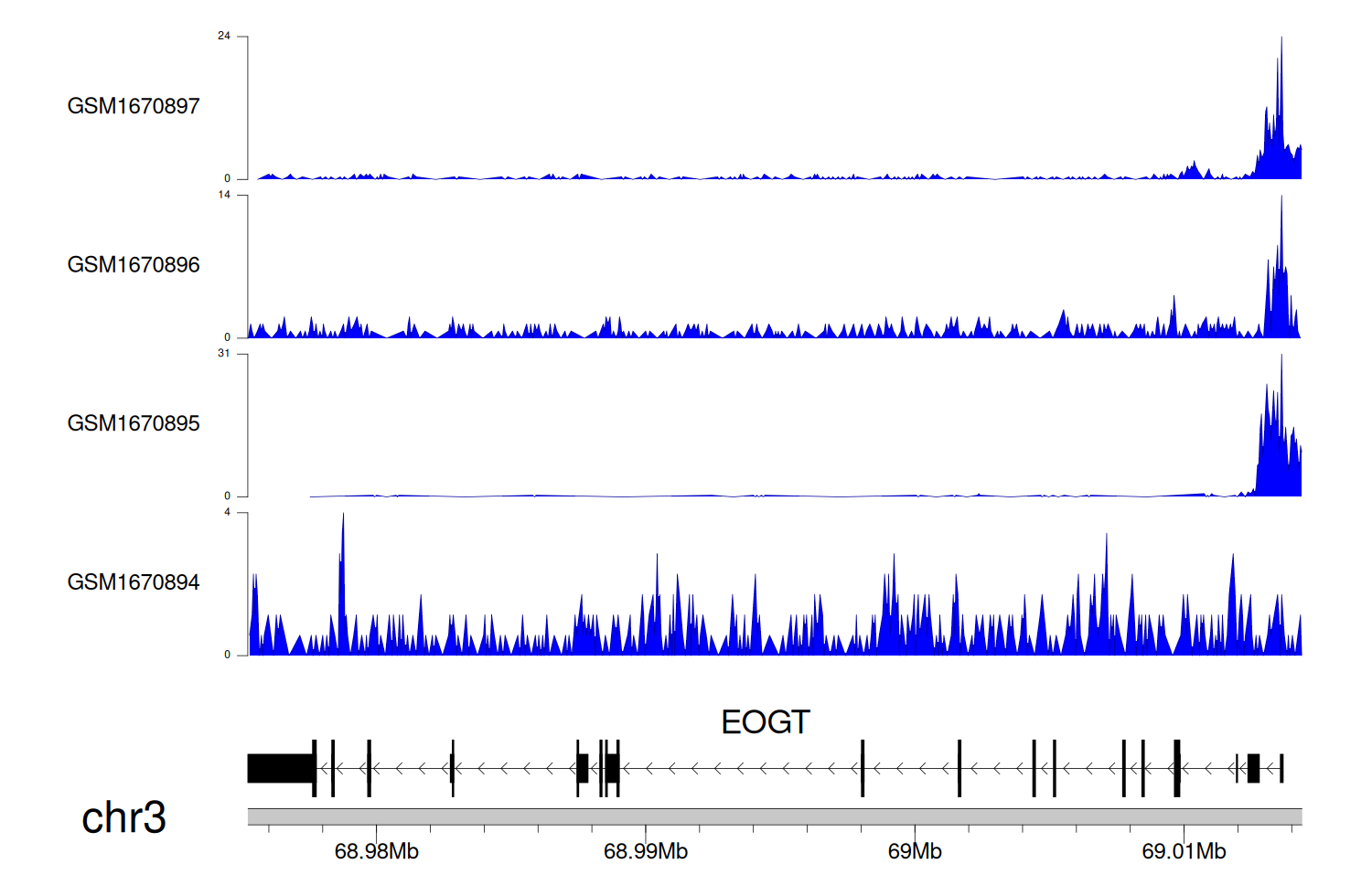 > Dataset: GSE68402 - EOGT peak across samples