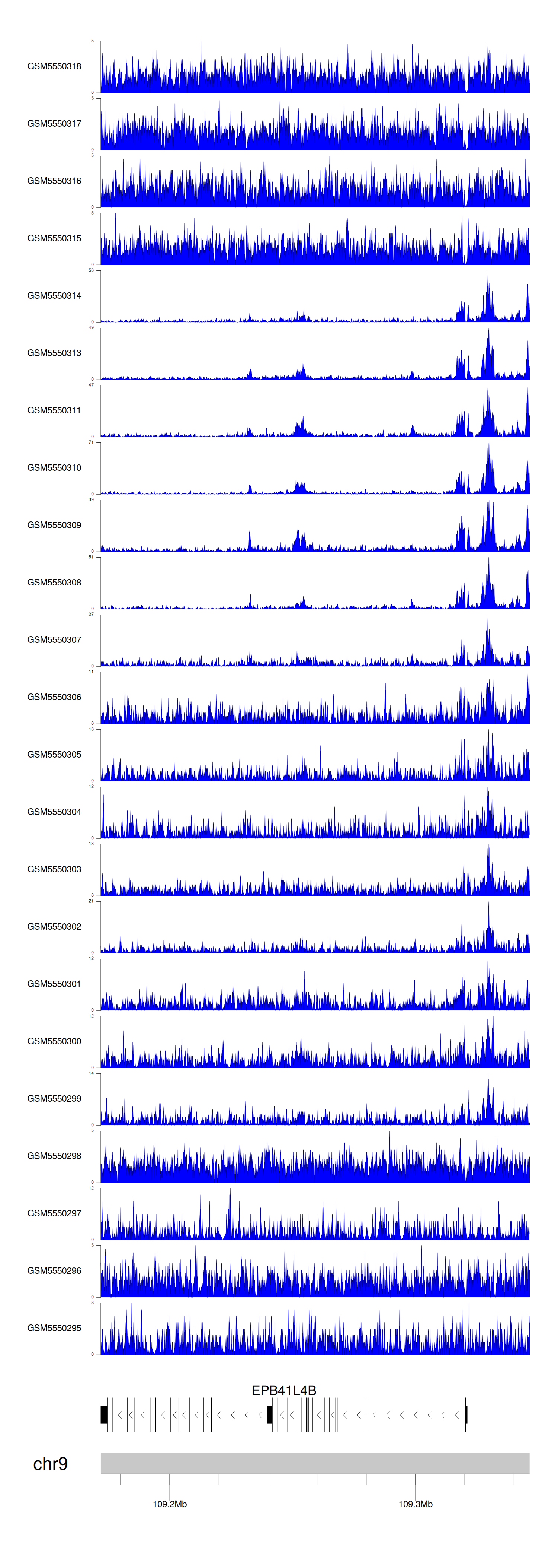 > Dataset: GSE143026 - EPB41L4B peak across samples