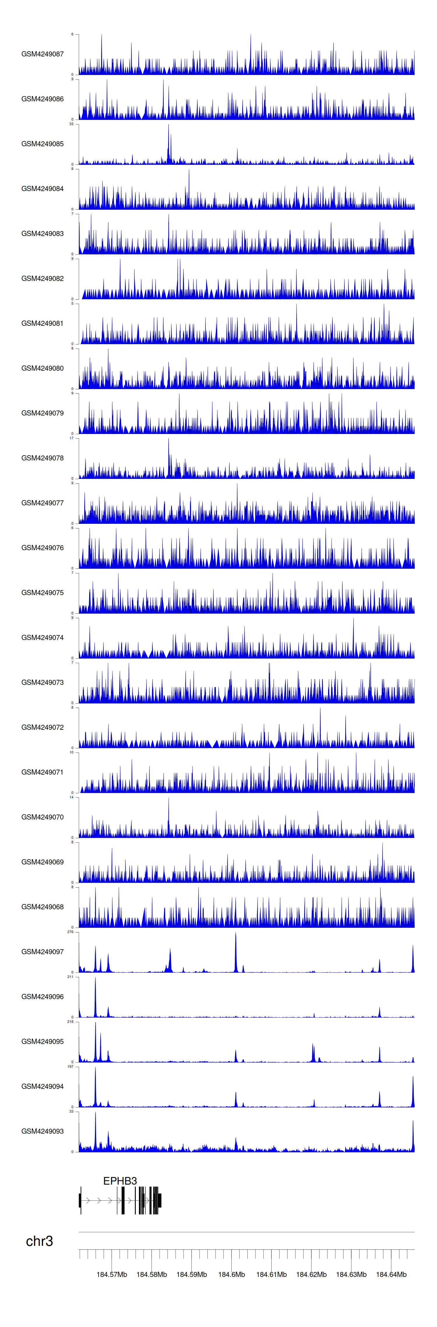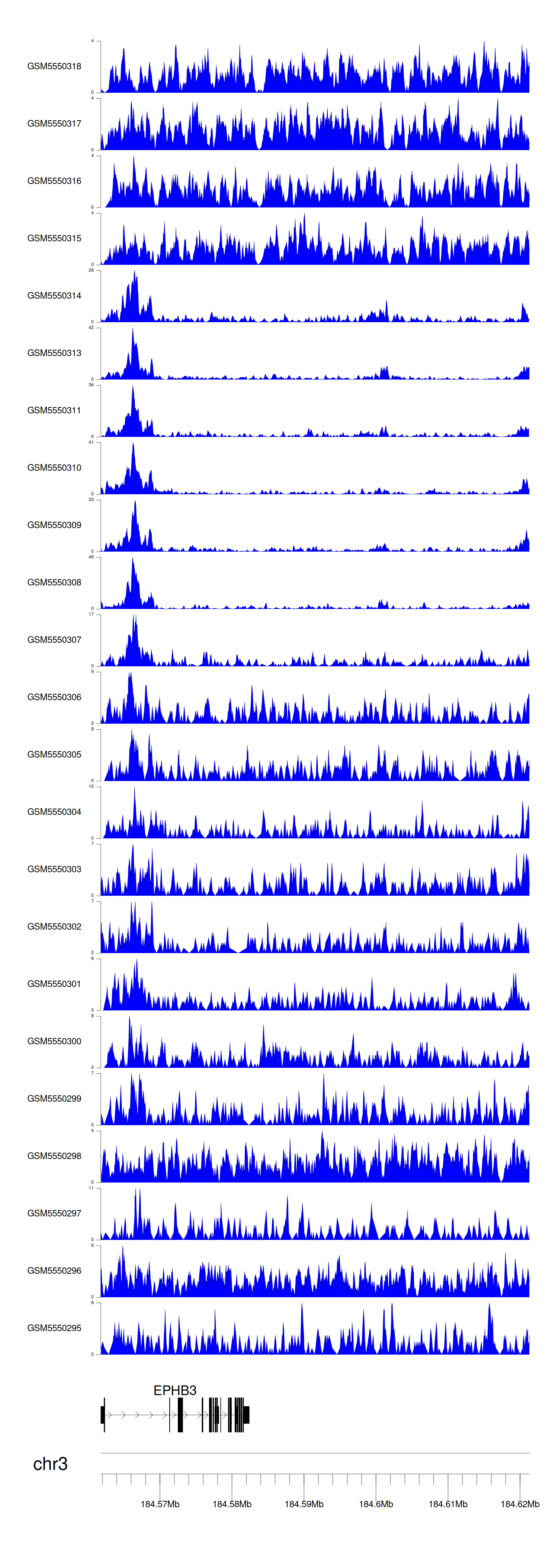 > Dataset: GSE143026 - EPHB3 peak across samples