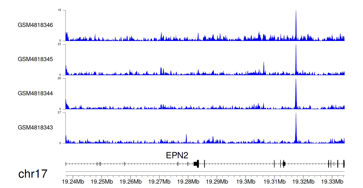 > Dataset: GSE131257 - EPN2 peak across samples
