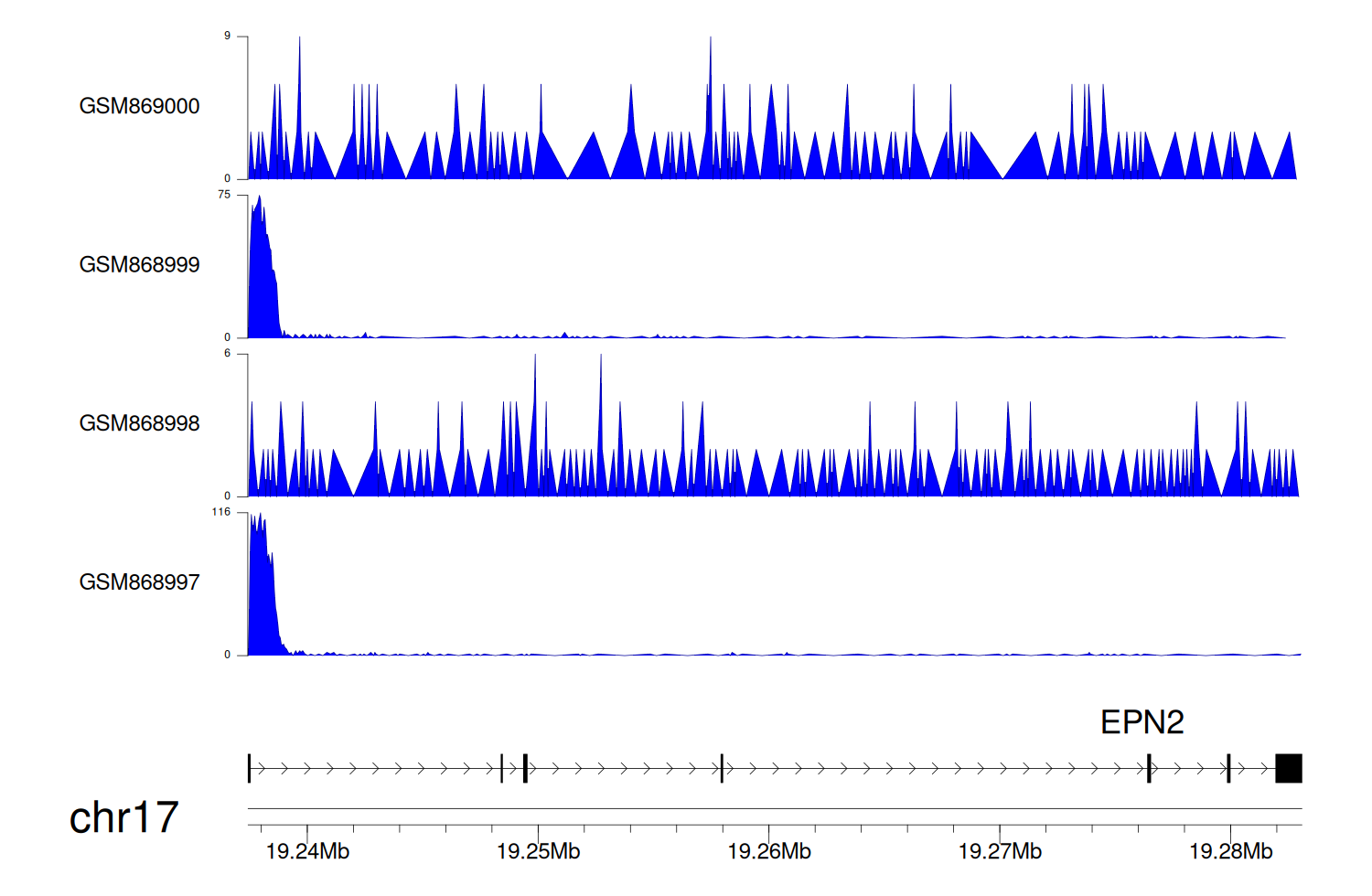 > Dataset: GSE68402 - EPN2 peak across samples