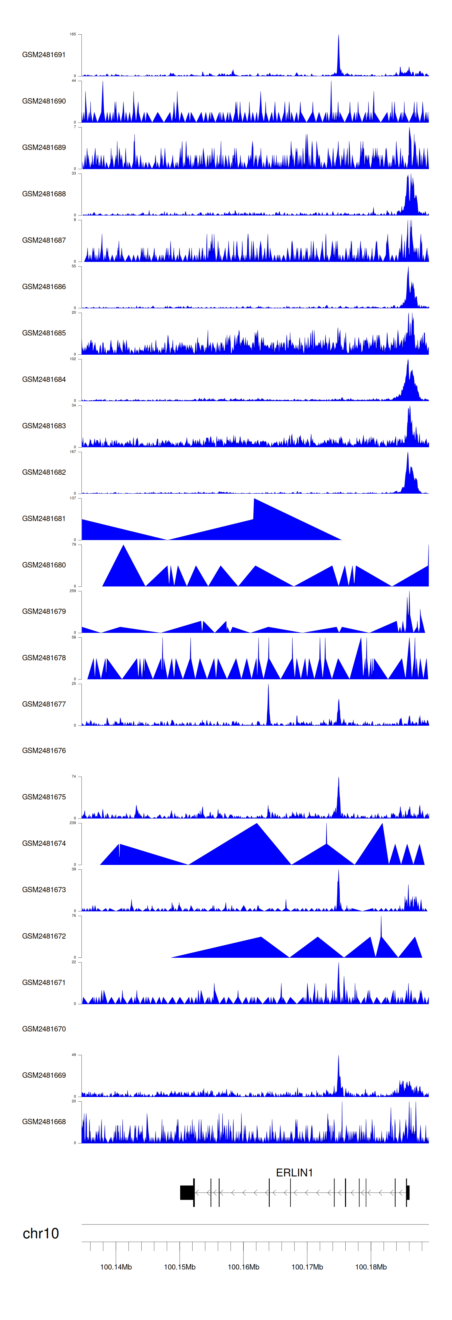 > Dataset: GSE94732 - ERLIN1 peak across samples