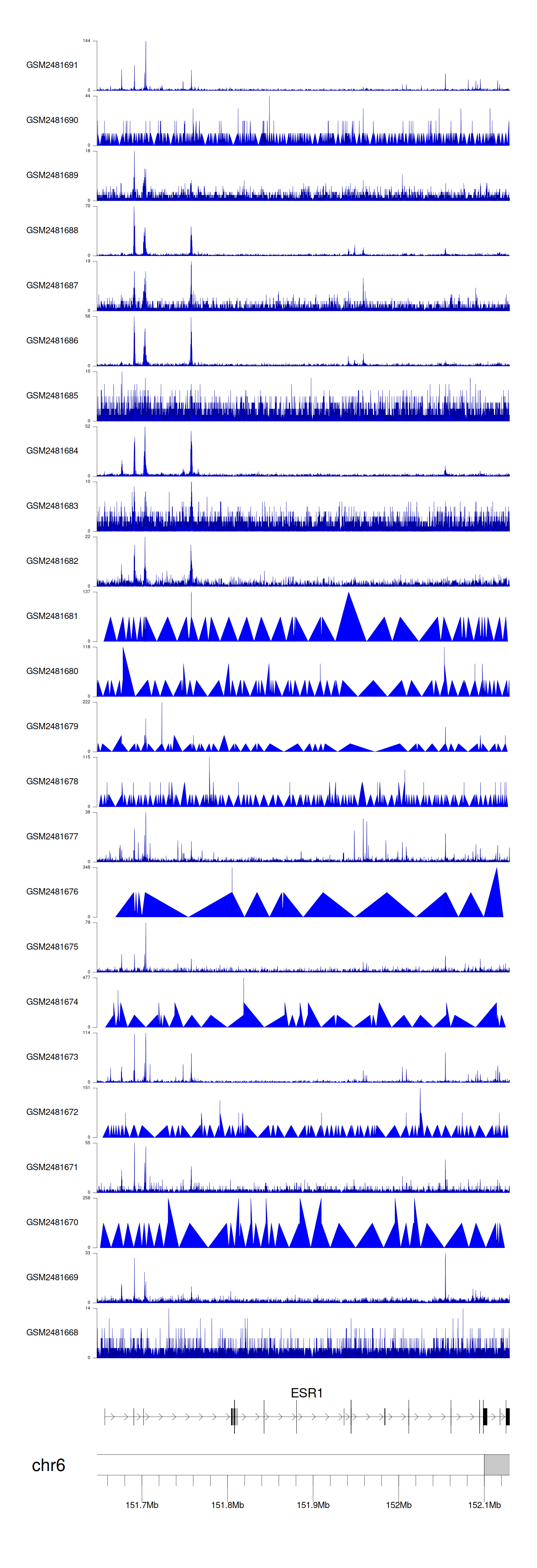 This gene encodes an estrogen receptor and ligand-activated transcription factor. The canonical protein contains an N-terminal ligand-independent transactivation domain, a central DNA binding domain, a hinge domain, and a C-terminal ligand-dependent transactivation domain. The protein localizes to the nucleus where it may form either a homodimer or a heterodimer with estrogen receptor 2. The protein encoded by this gene regulates the transcription of many estrogen-inducible genes that play a role in growth, metabolism, sexual development, gestation, and other reproductive functions and is expressed in many non-reproductive tissues. The receptor encoded by this gene plays a key role in breast cancer, endometrial cancer, and osteoporosis. This gene is reported to have dozens of transcript variants due to the use of alternate promoters and alternative splicing, however, the full-length nature of many of these variants remain uncertain. [provided by RefSeq, Jul 2020] |