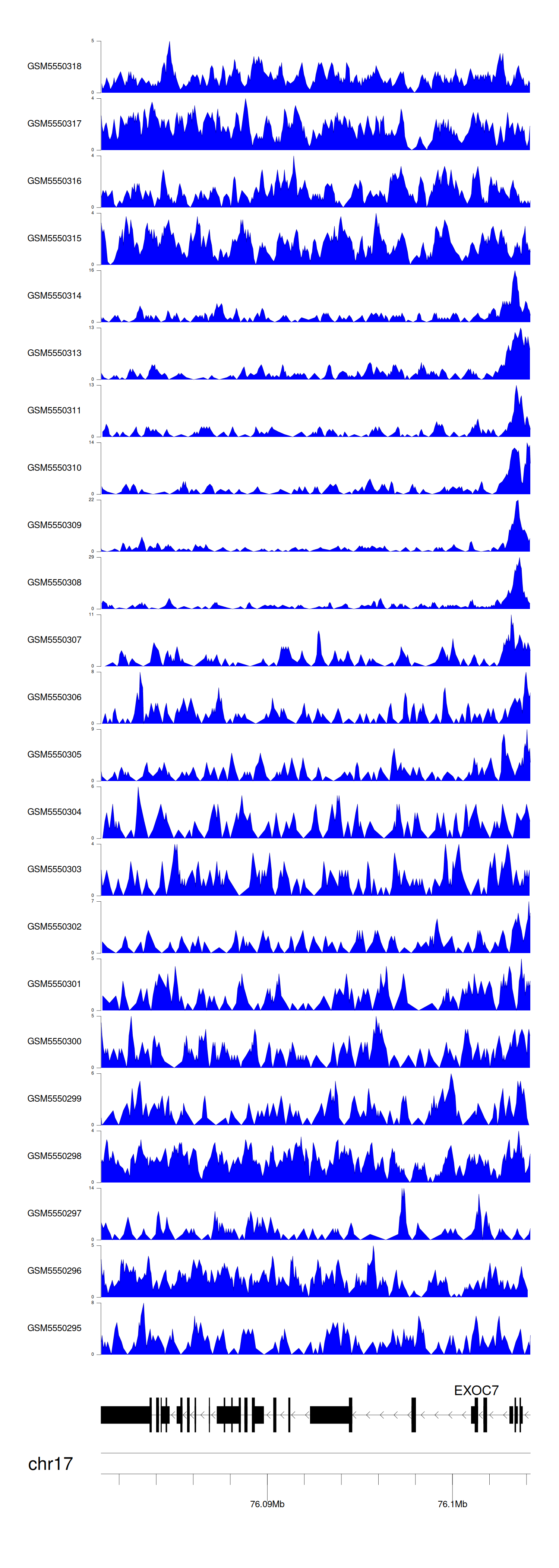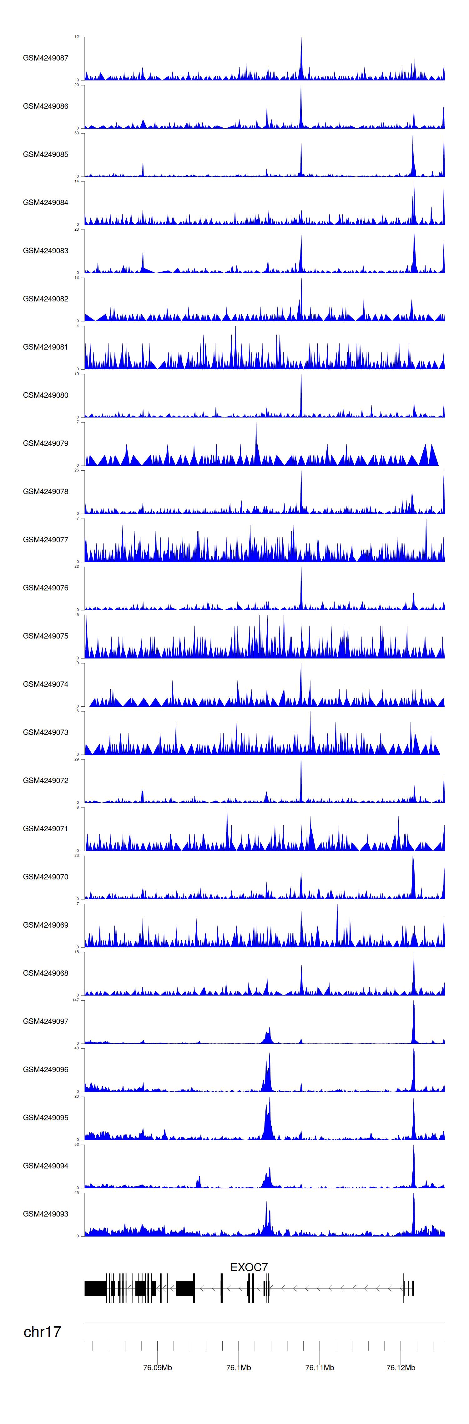 > Dataset: GSE143026 - EXOC7 peak across samples