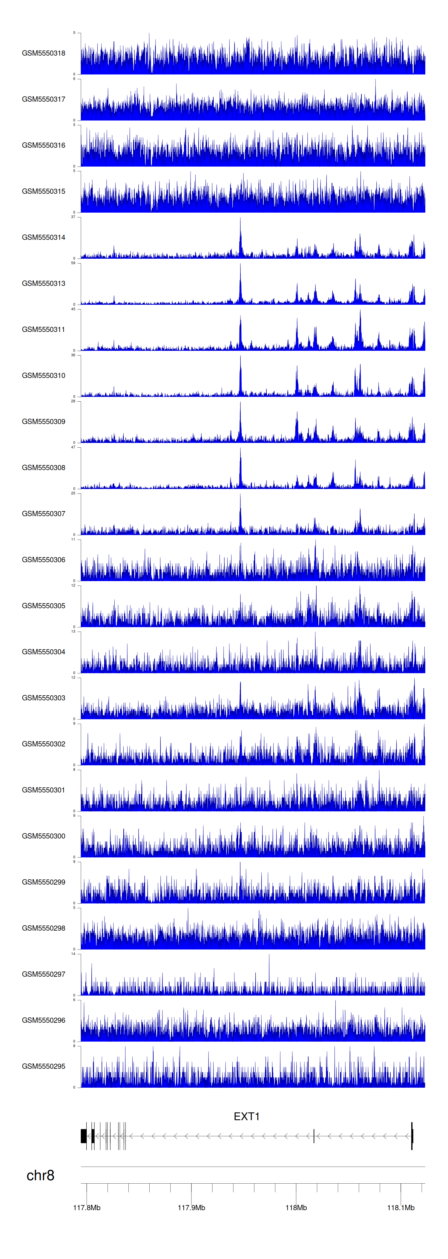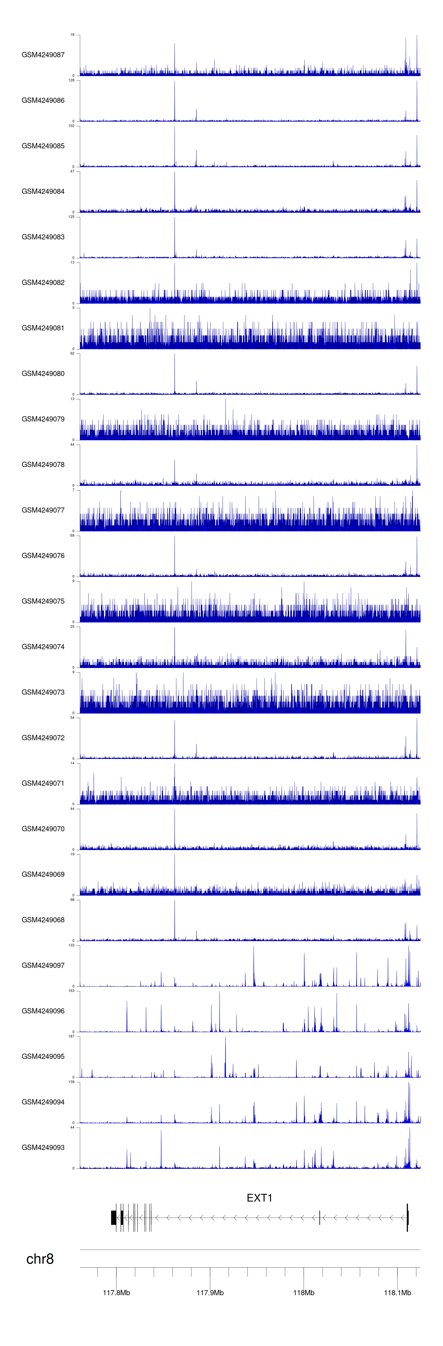 > Dataset: GSE143026 - EXT1 peak across samples