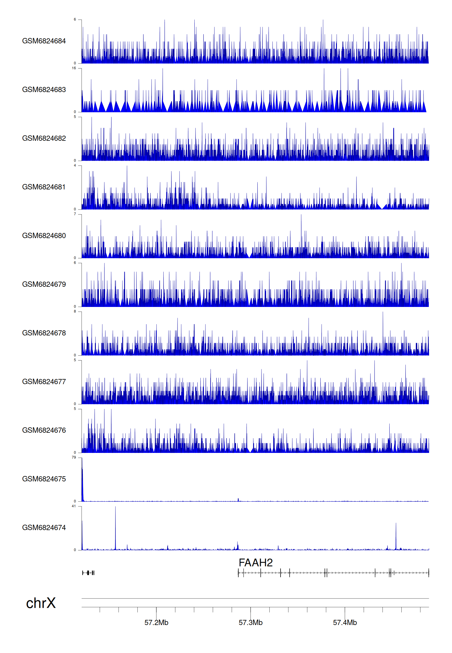 > Dataset: GSE144329 - FAAH2 peak across samples
