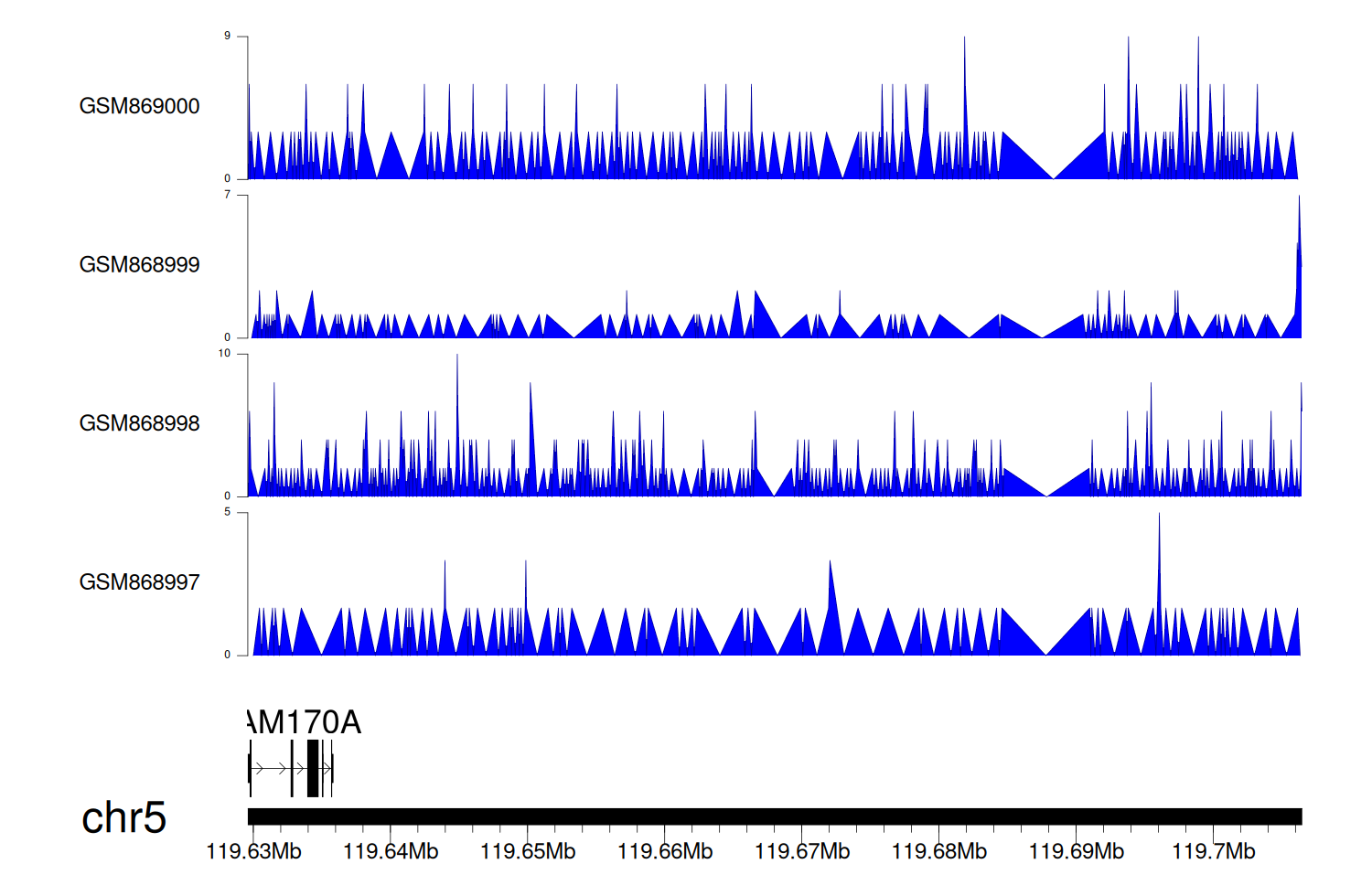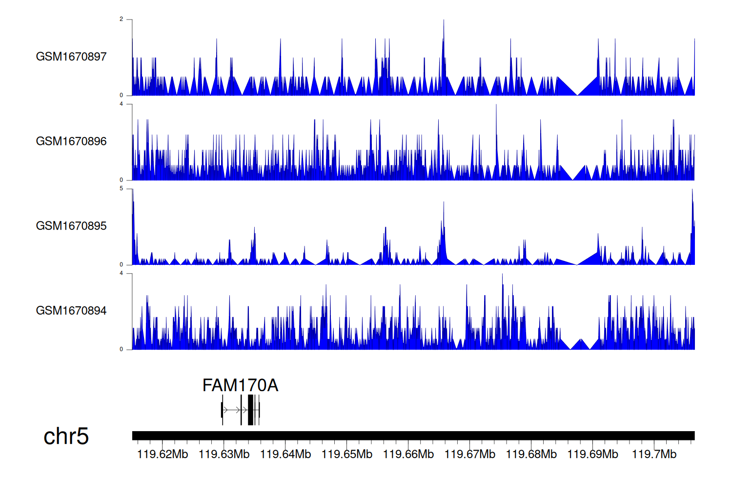 > Dataset: GSE68402 - FAM170A peak across samples