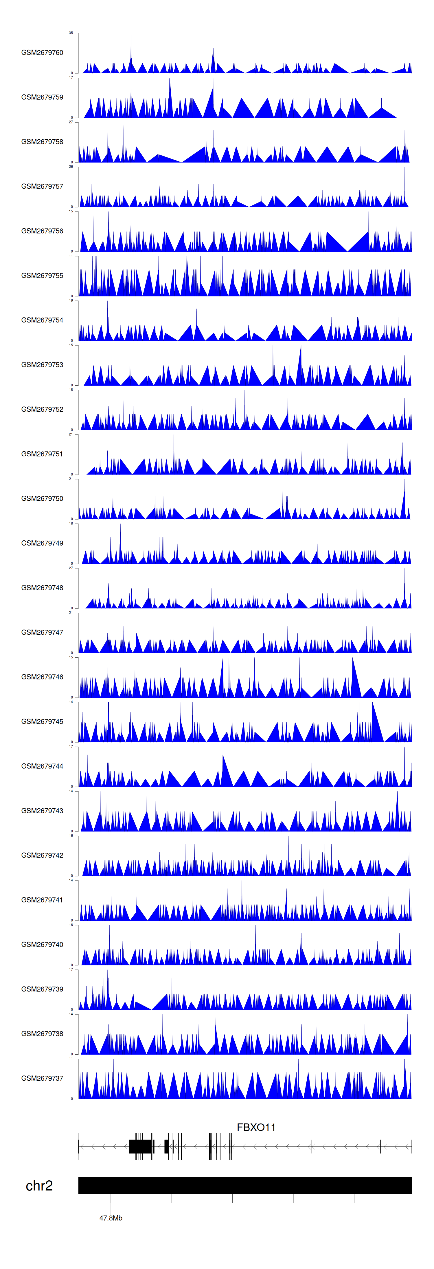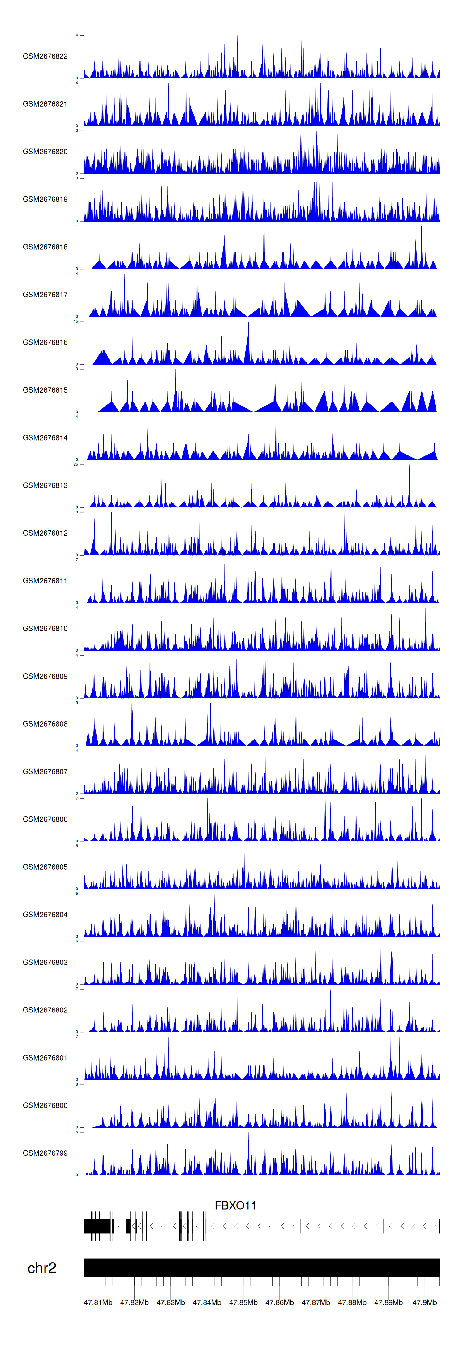 > Dataset: GSE165703 - FBXO11 peak across samples