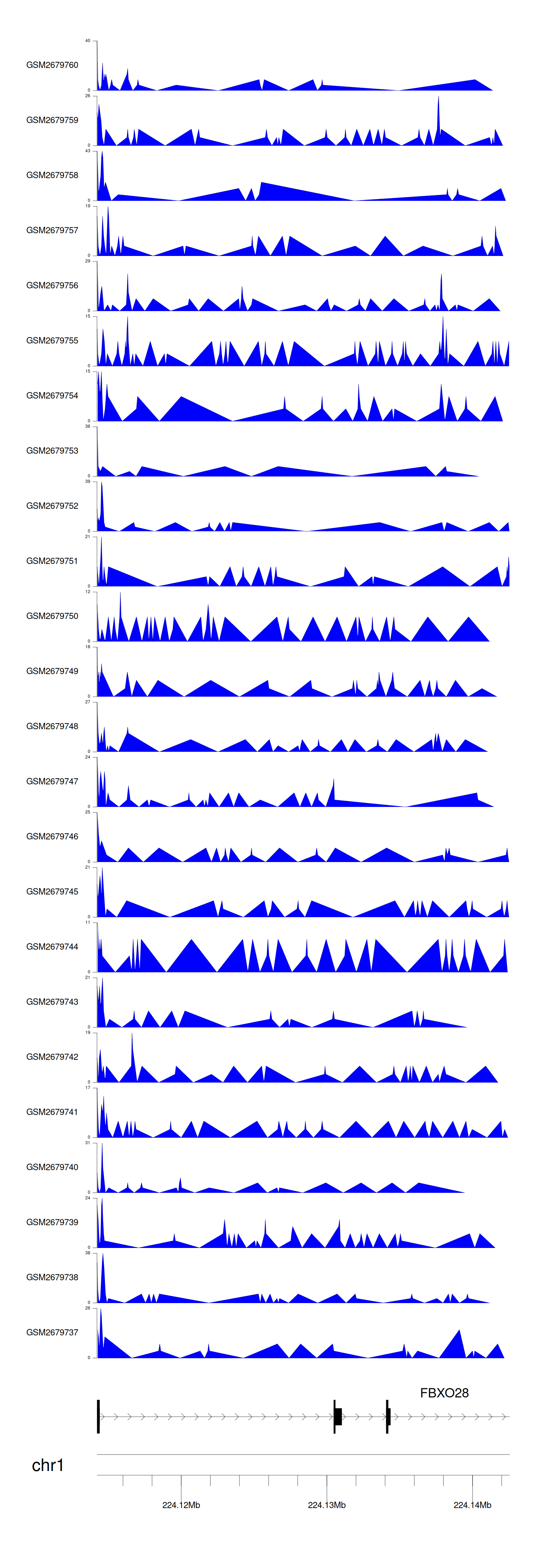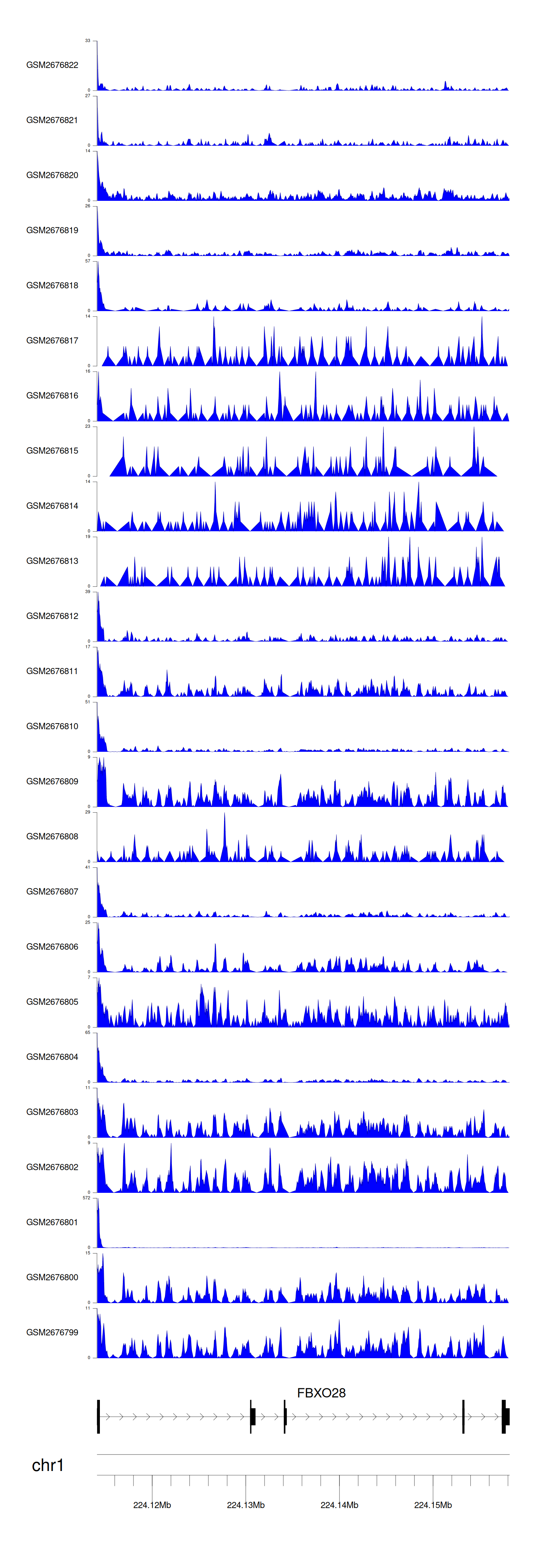 > Dataset: GSE100376 - FBXO28 peak across samples