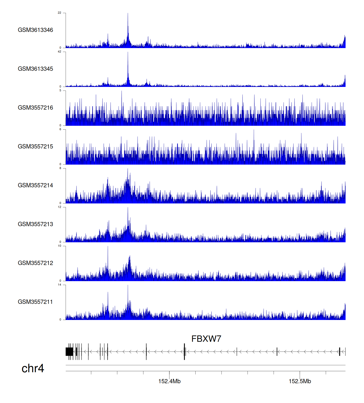 > Dataset: GSE147406 - FBXW7 peak across samples