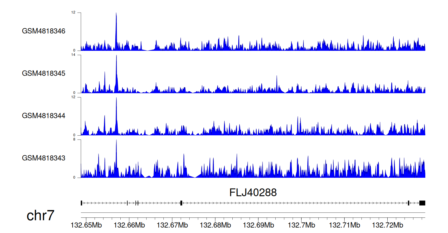 > Dataset: GSE131257 - FLJ40288 peak across samples