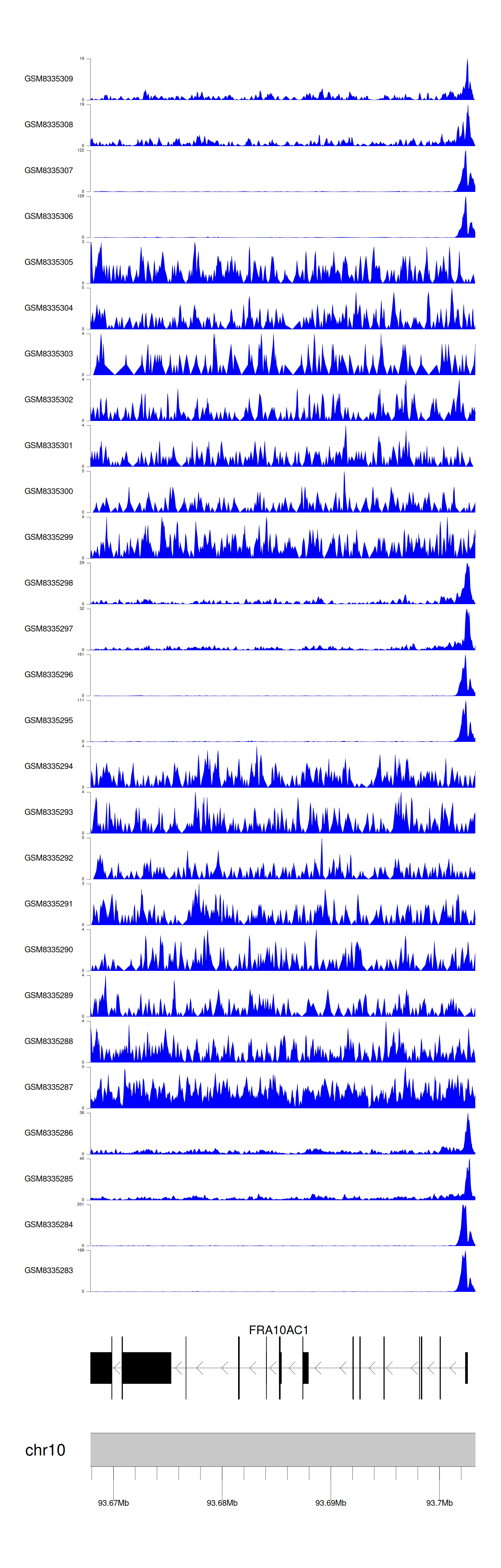 > Dataset: GSE270130 - FRA10AC1 peak across samples