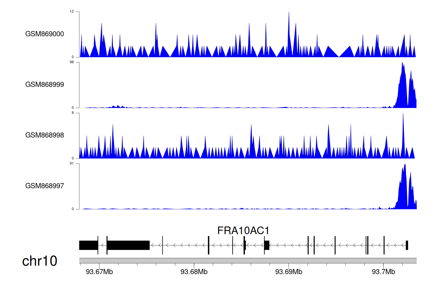 > Dataset: GSE68402 - FRA10AC1 peak across samples
