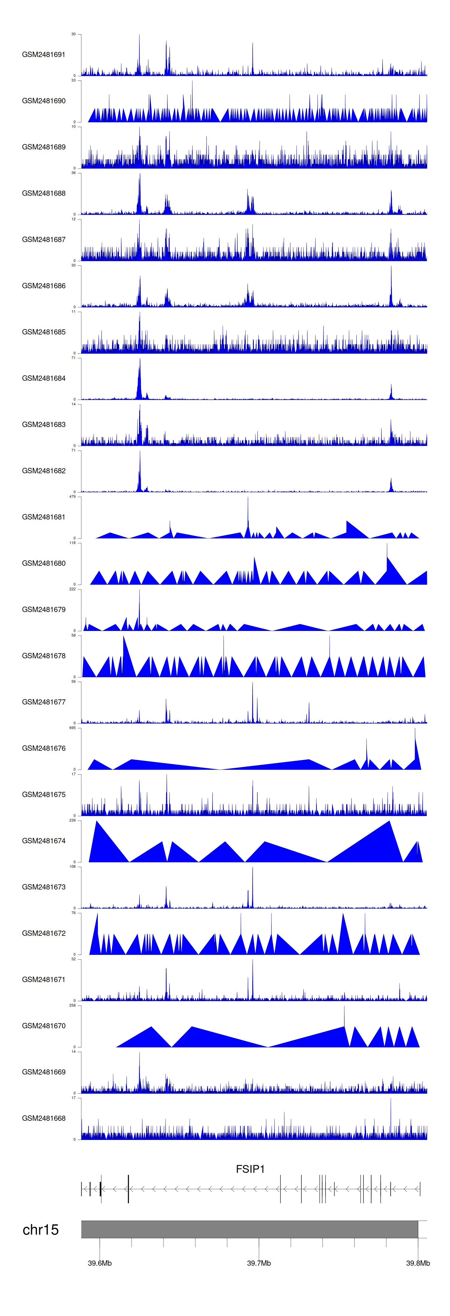 > Dataset: GSE94732 - FSIP1 peak across samples