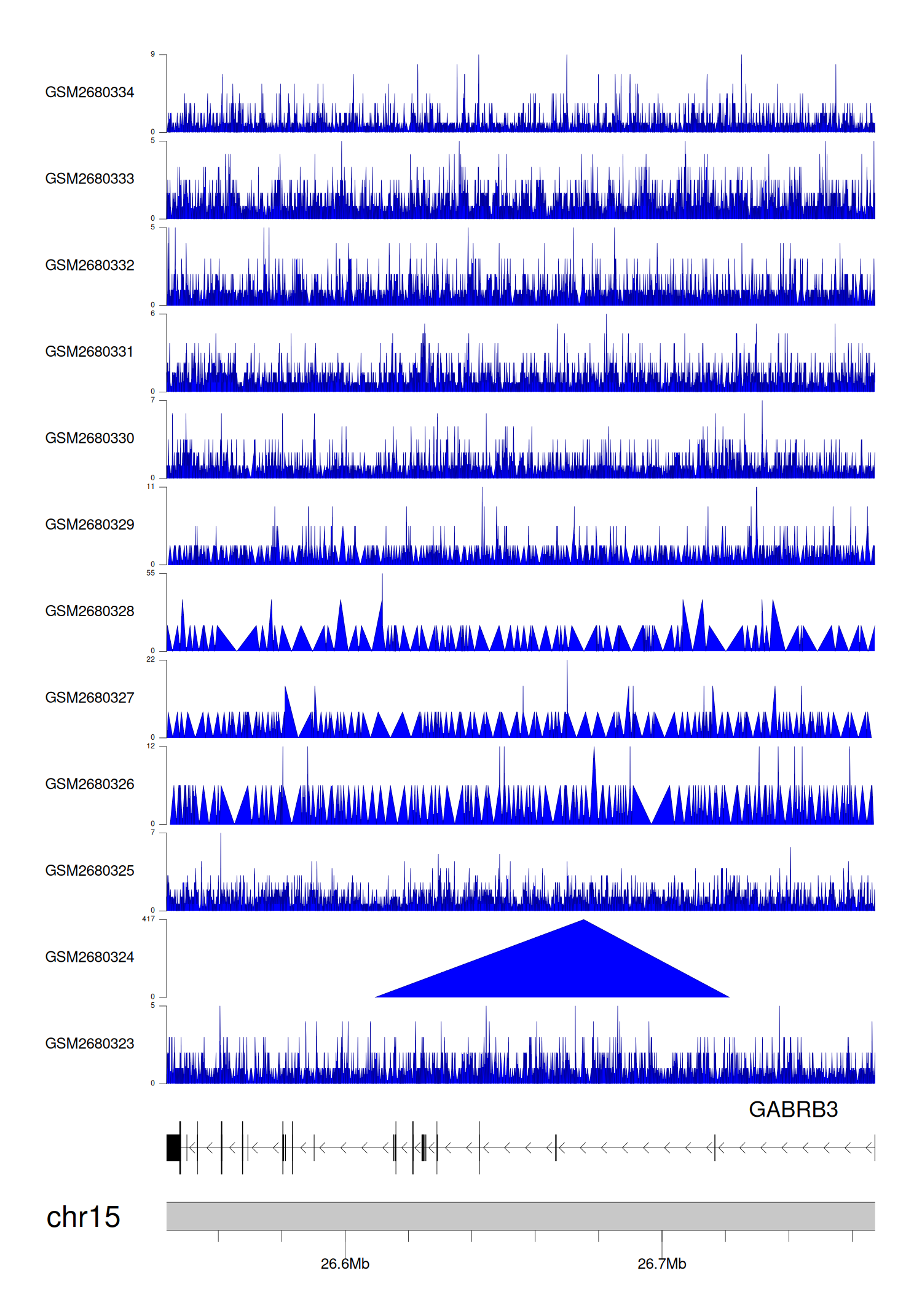 > Dataset: GSE68402 - GABRB3 peak across samples
