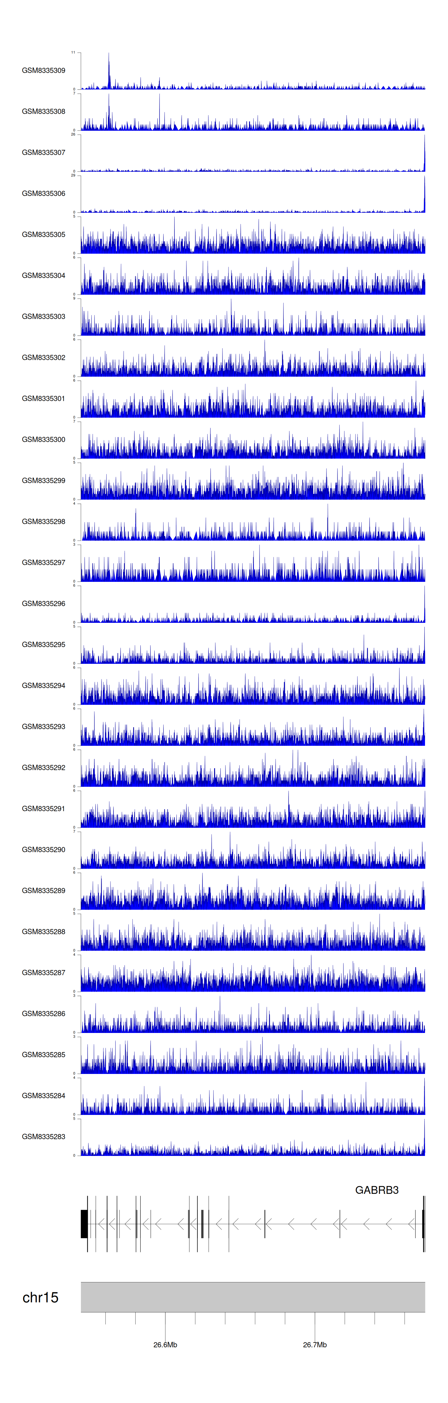 > Dataset: GSE270130 - GABRB3 peak across samples