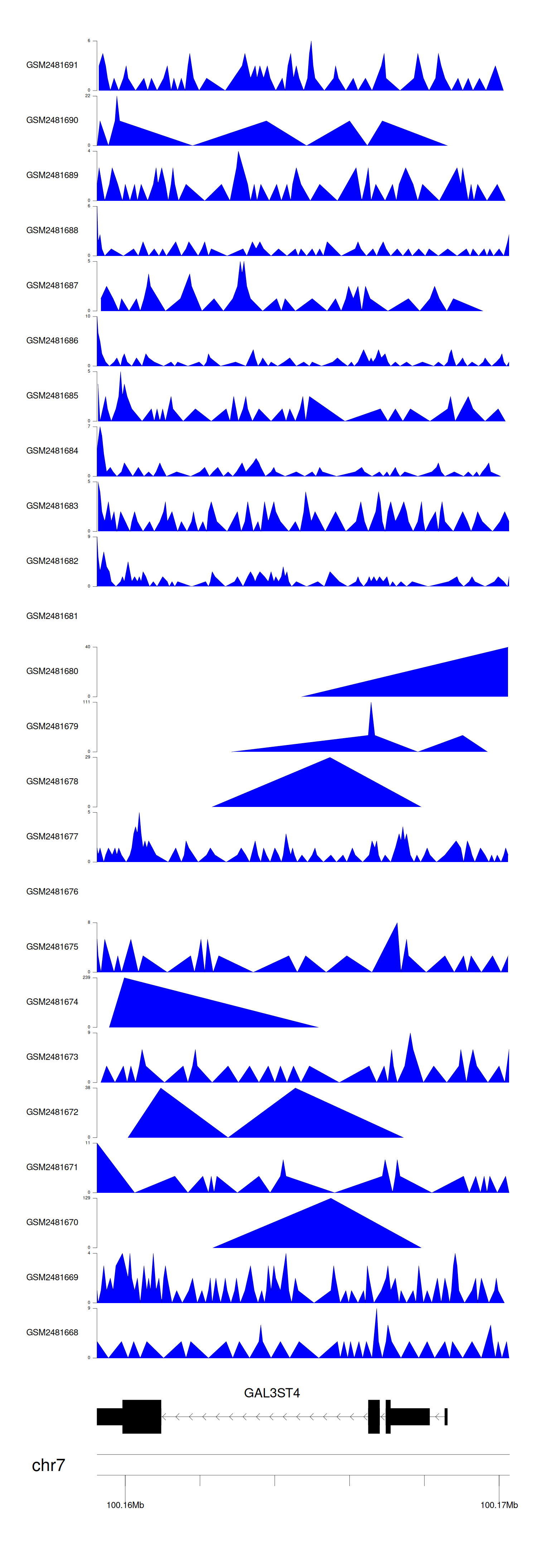 > Dataset: GSE94732 - GAL3ST4 peak across samples