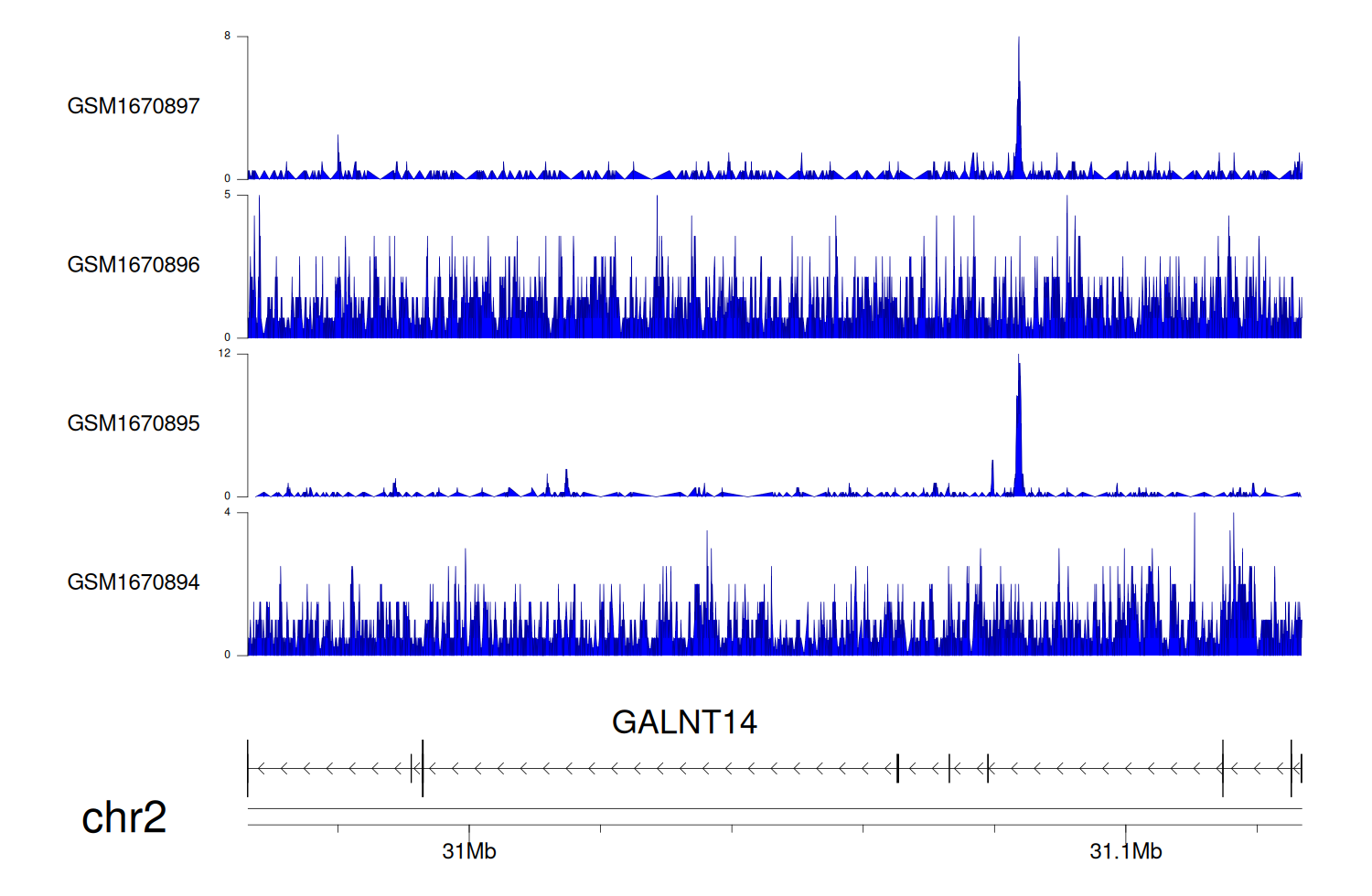 > Dataset: GSE100400 - GALNT14 peak across samples