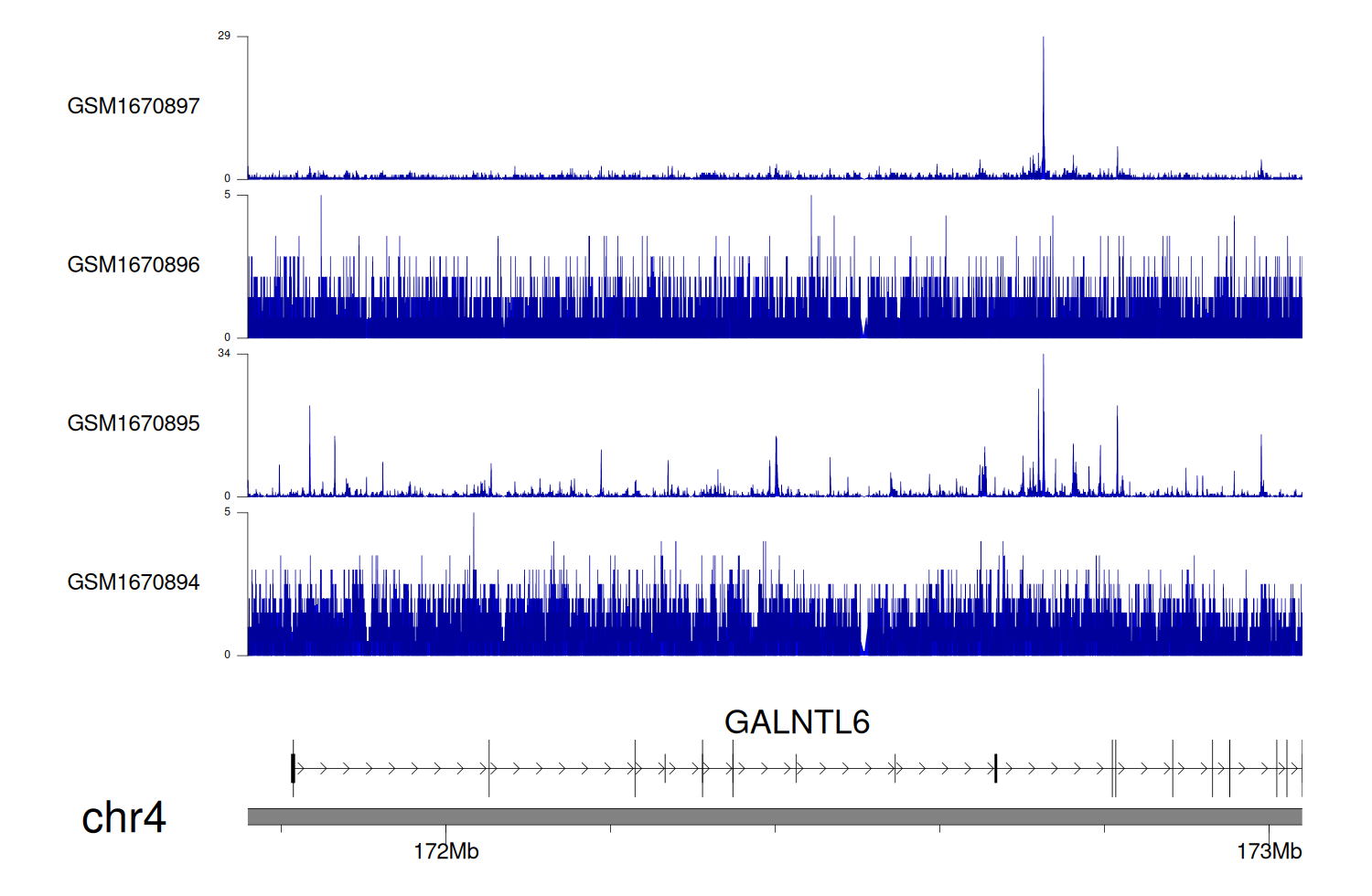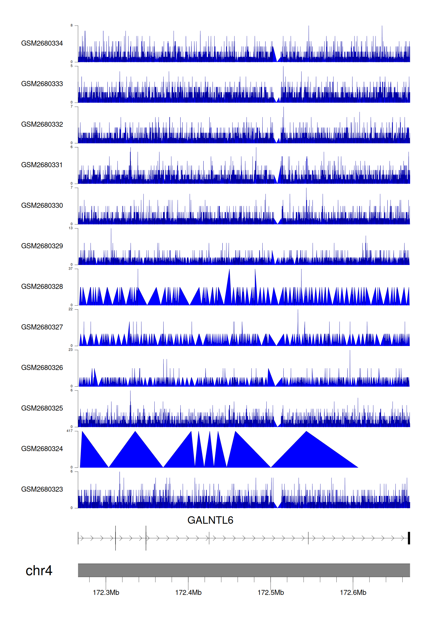 > Dataset: GSE100400 - GALNTL6 peak across samples