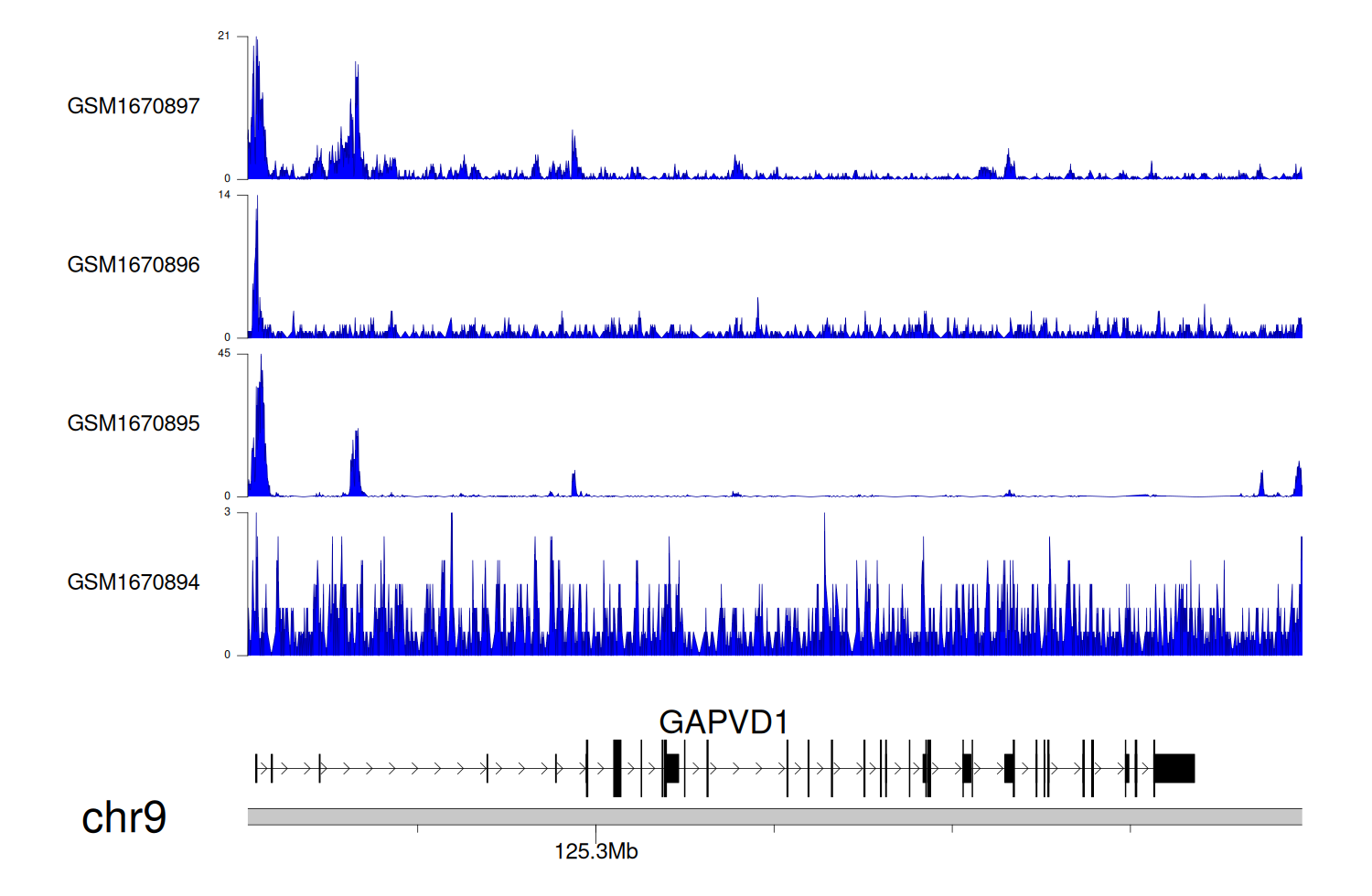 > Dataset: GSE131257 - GAPVD1 peak across samples