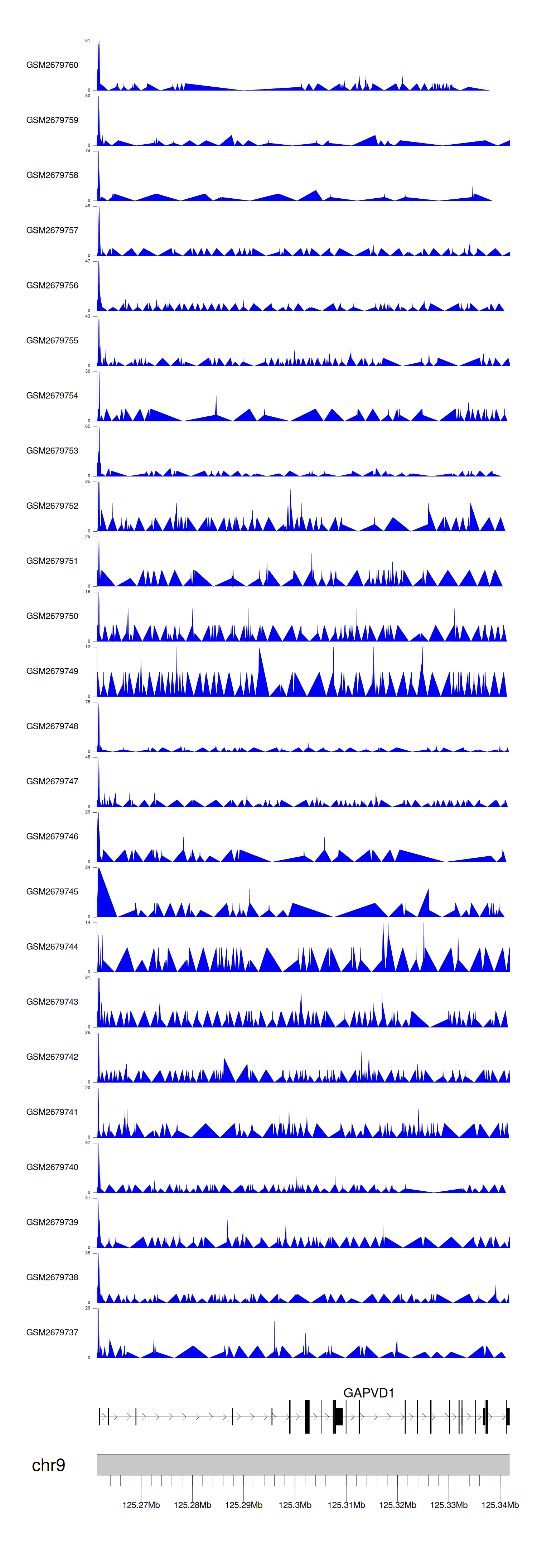 > Dataset: GSE165703 - GAPVD1 peak across samples