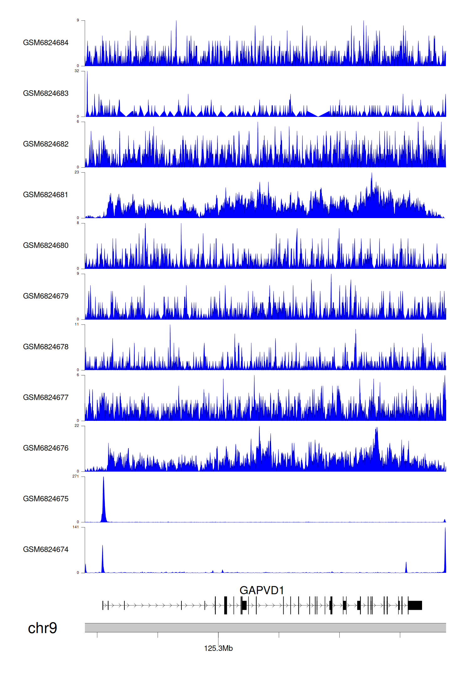 > Dataset: GSE144329 - GAPVD1 peak across samples